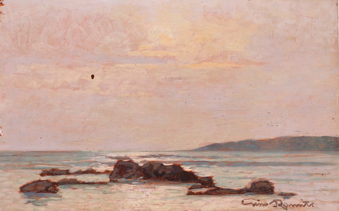 Al verso: etichetta e timbro Galleria d'Arte Goldoni, Livorno (con titolo Marina).