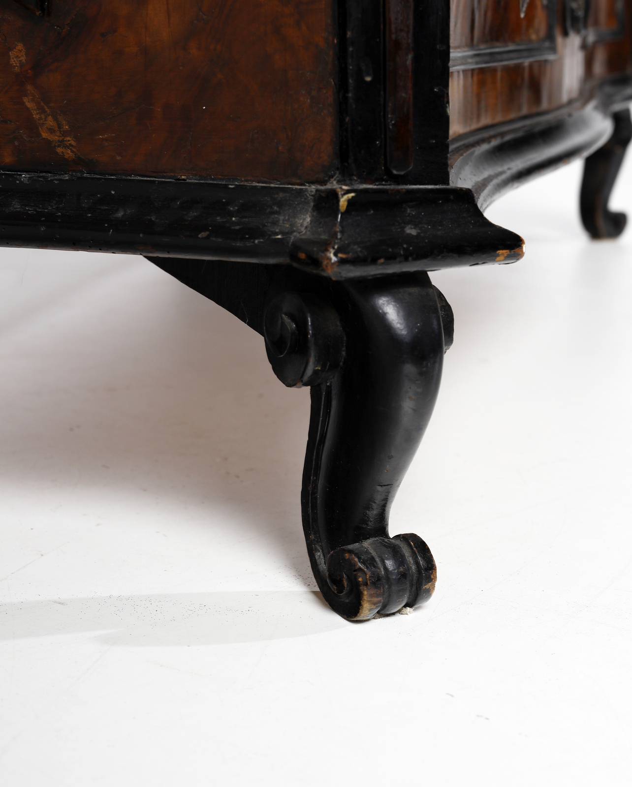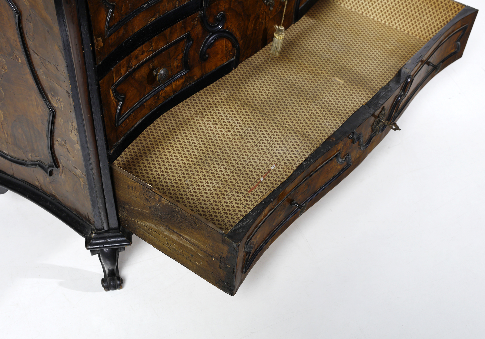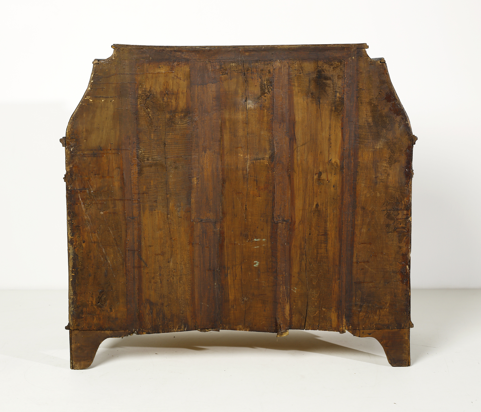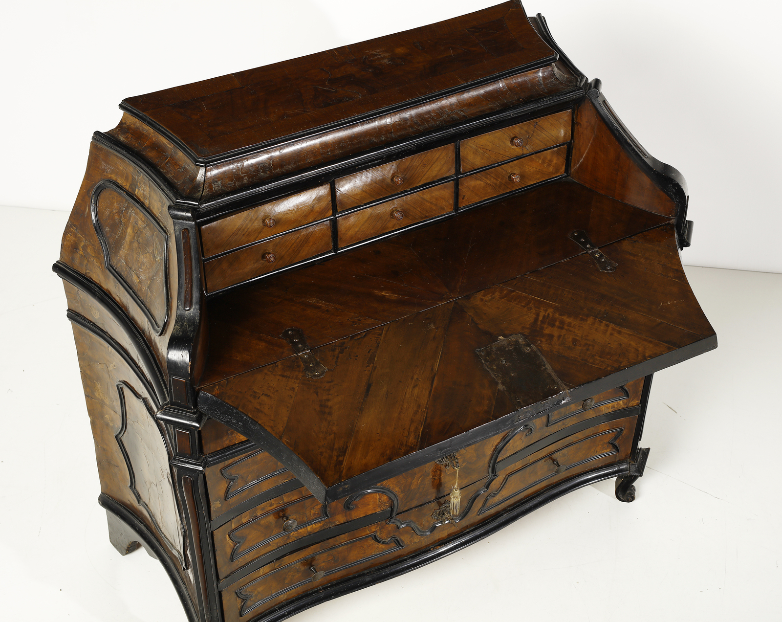 Cassettone a ribalta impiallacciato in radica di noce con cornici modanate in legno [..]
