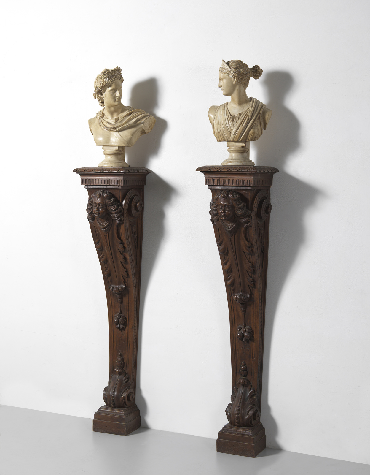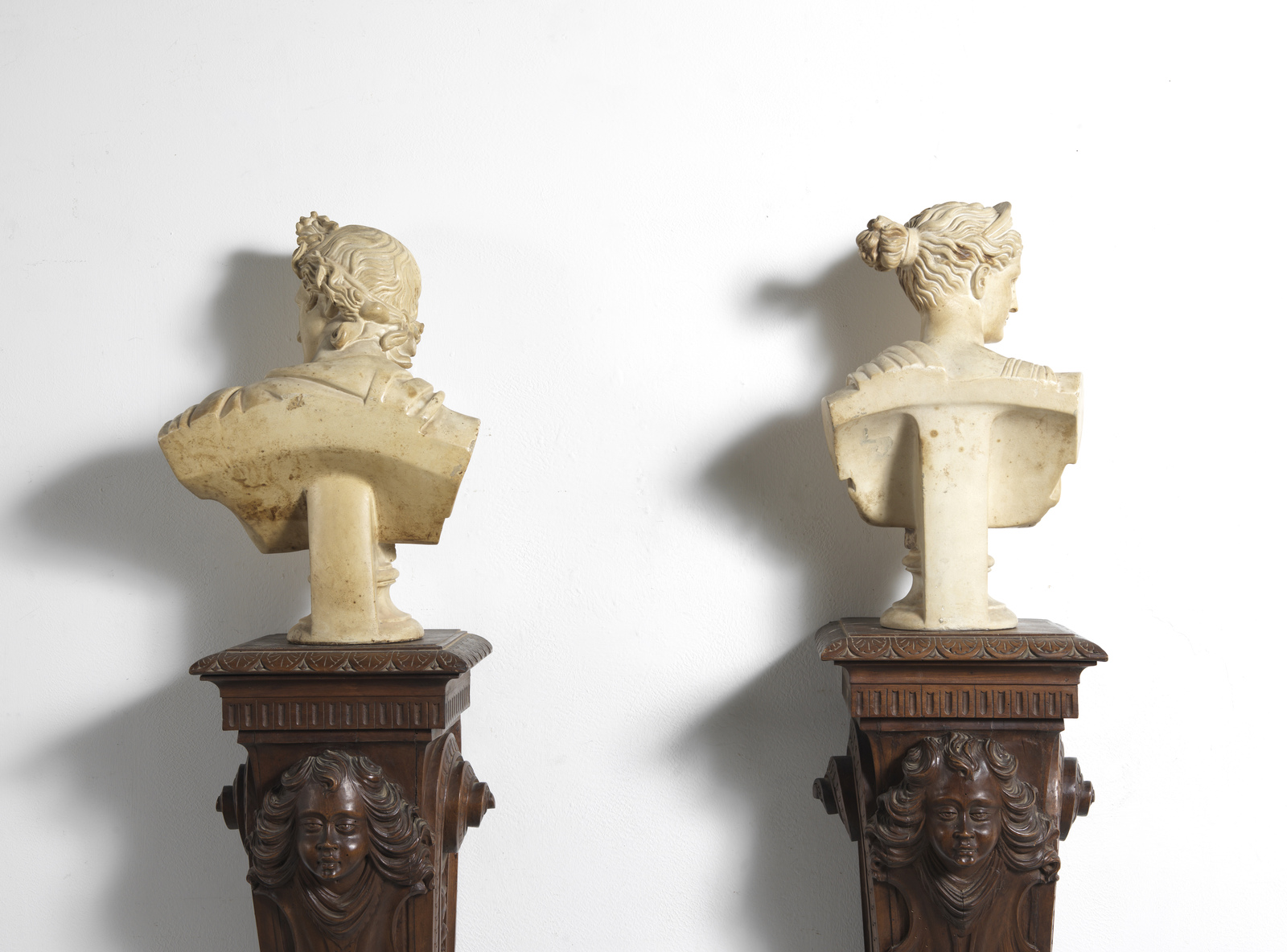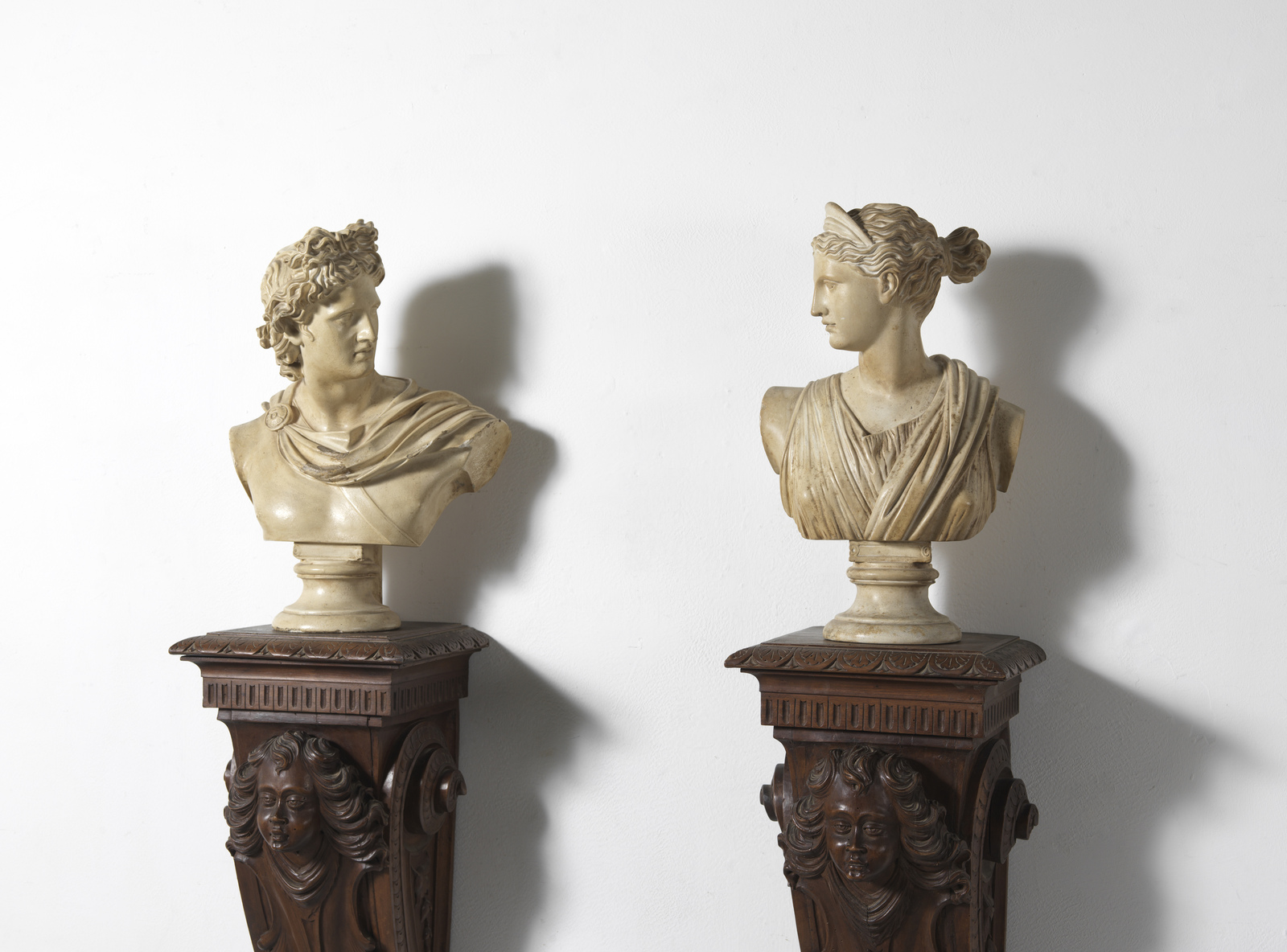 Coppia di busti in gesso raffiguranti l'Apollo del Belvedere e la Diana di Versailles, [..]