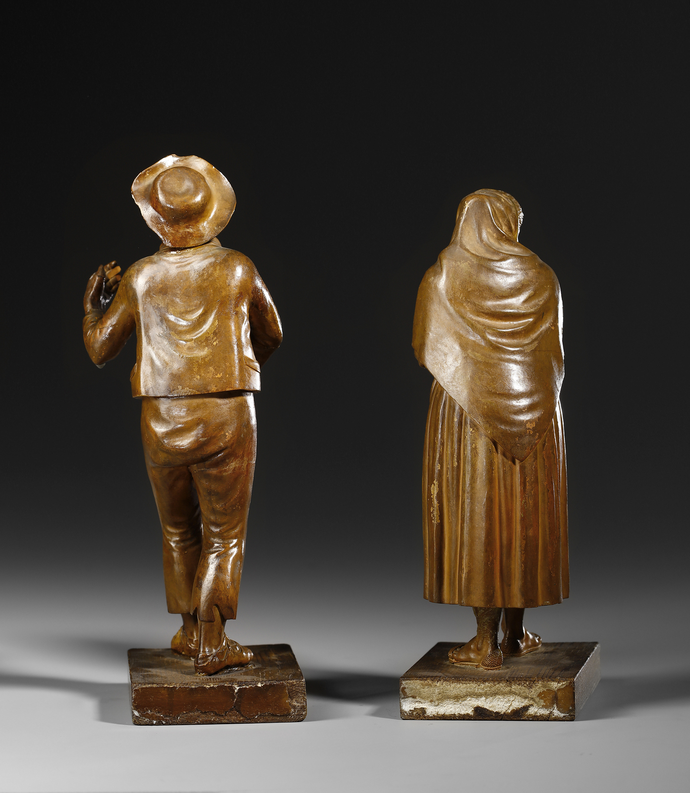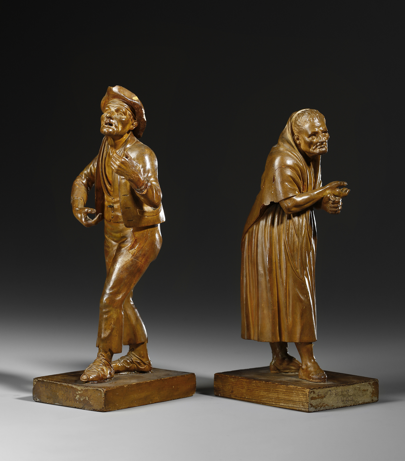 Coppia di sculture in terracotta raffiguranti popolani
