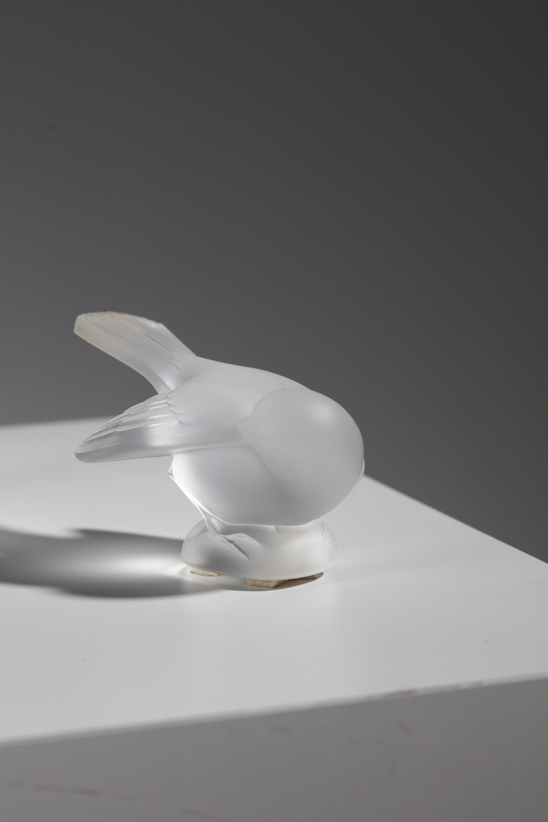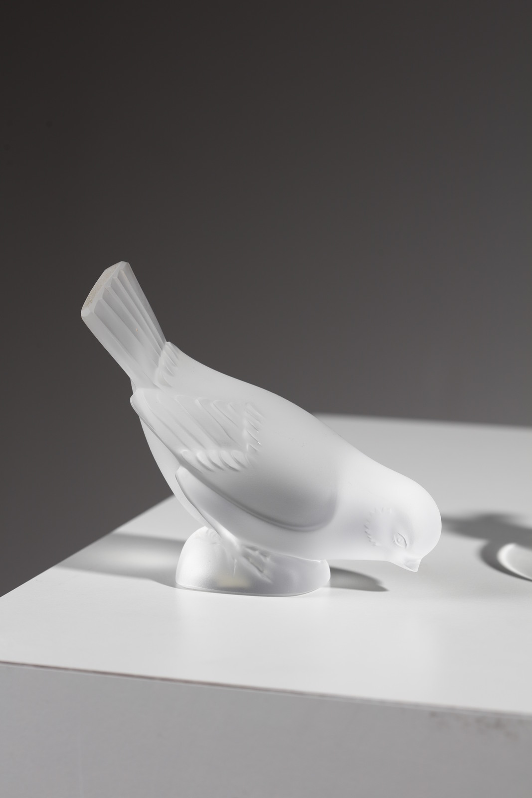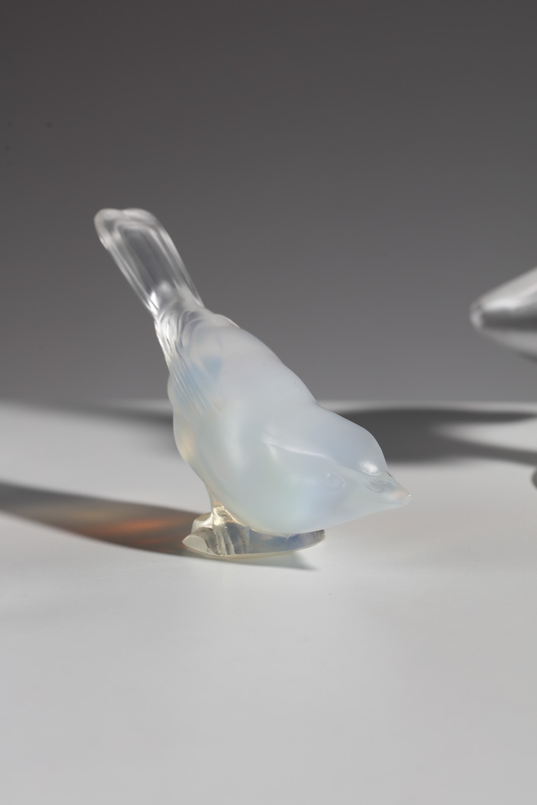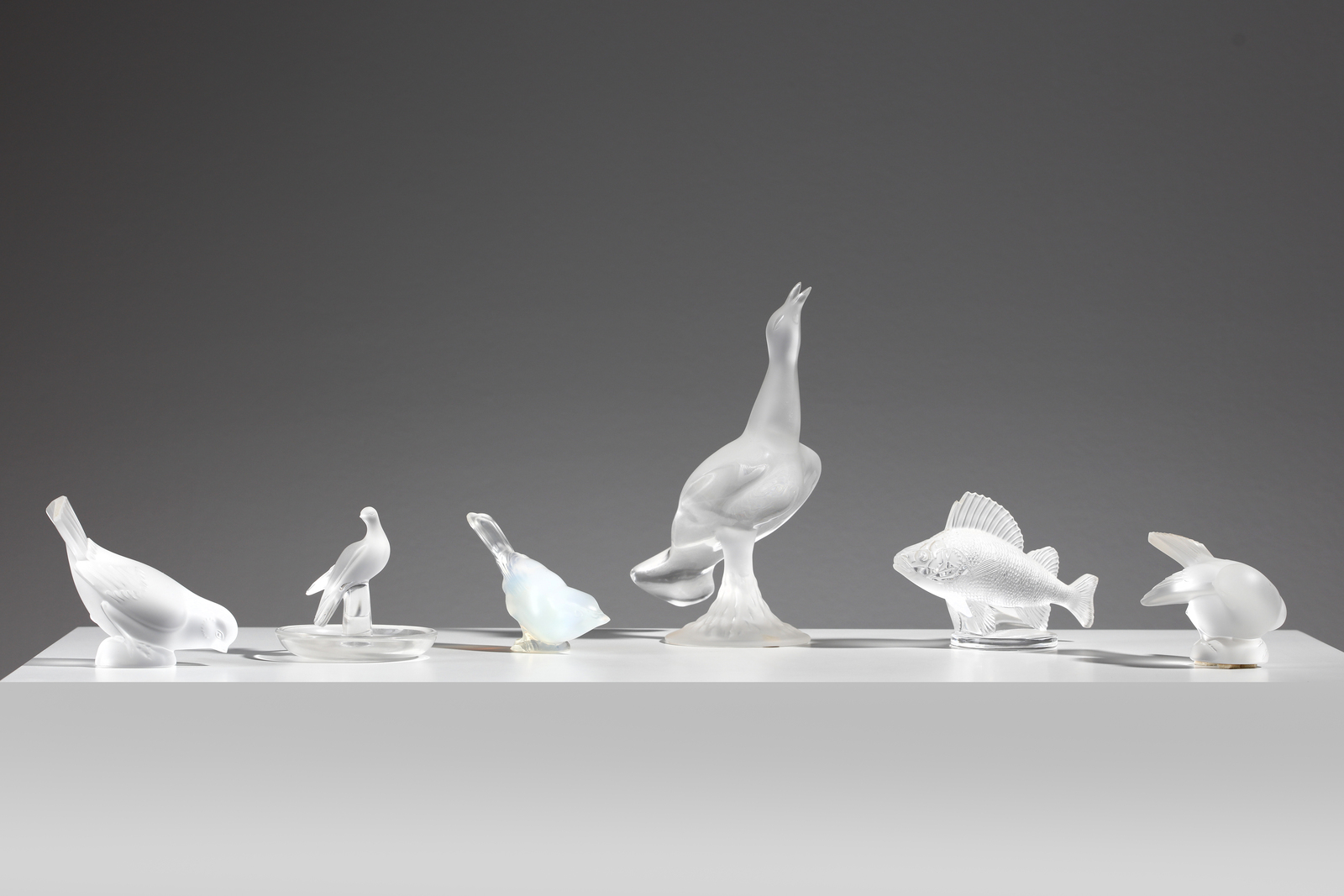 Gruppo di sei ferma carte raffiguranti animali in vetro bianco opalescente
