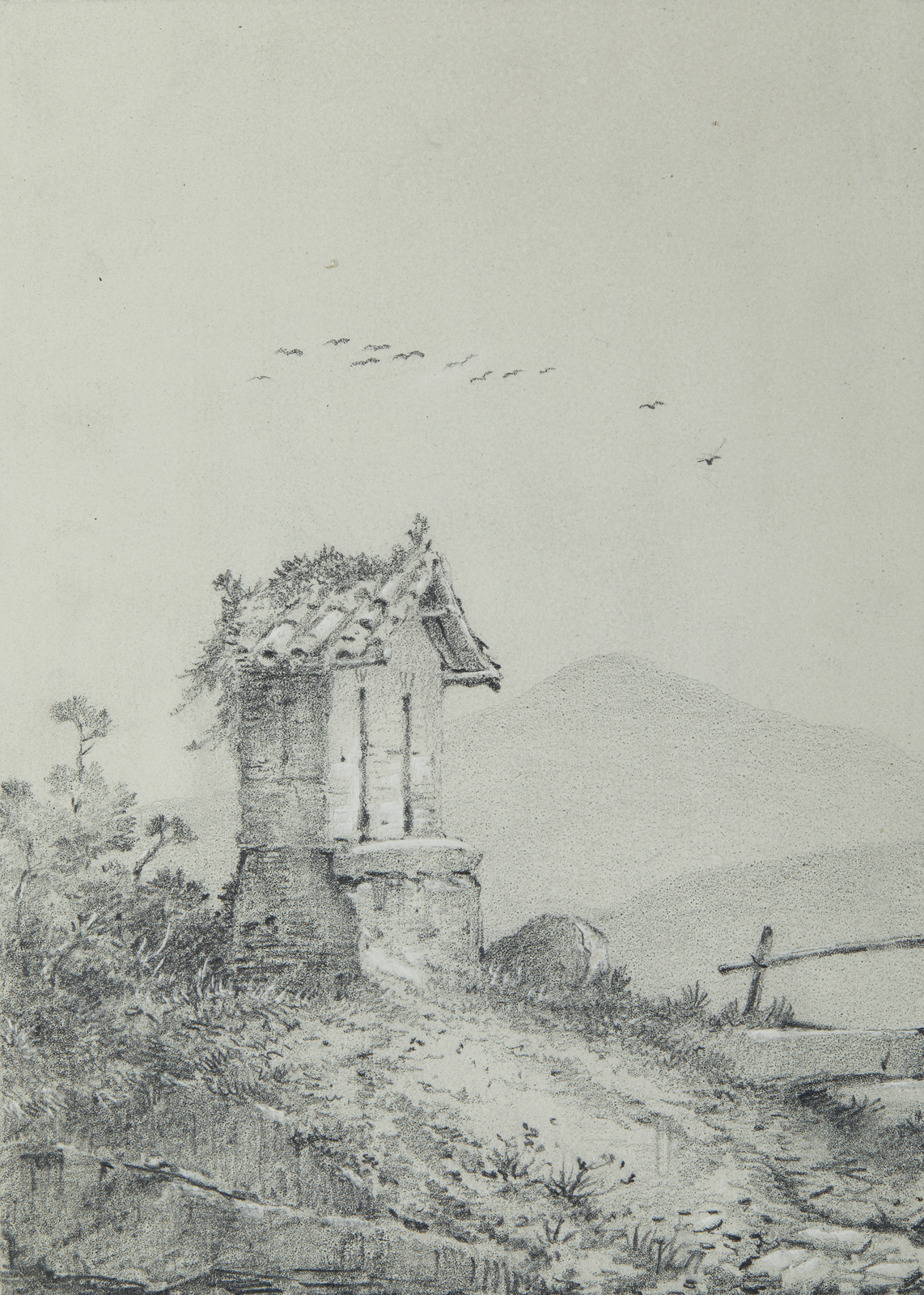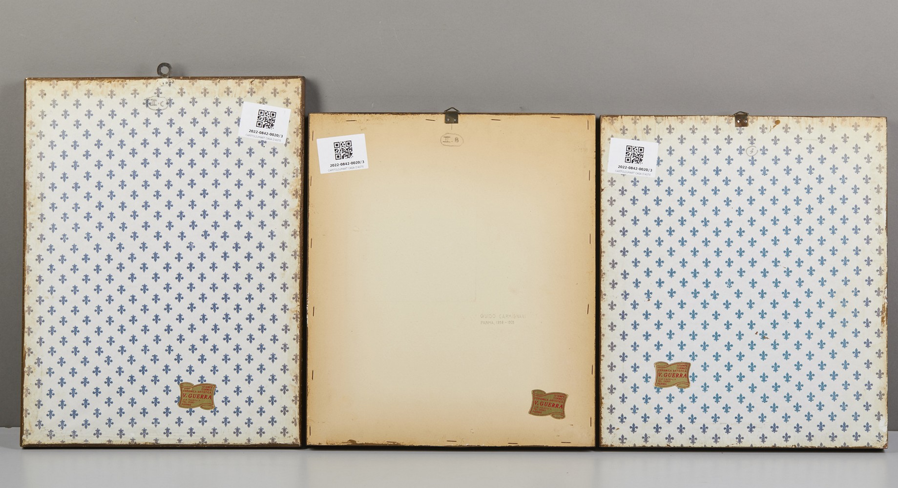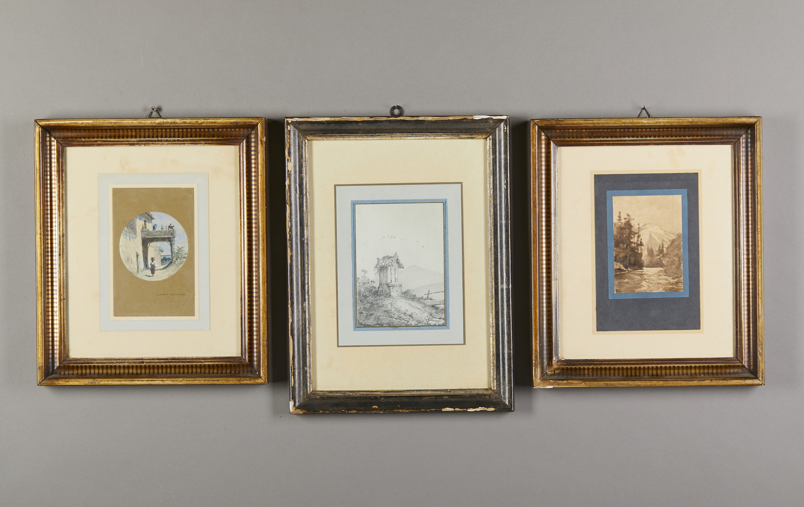 Gruppo di tre opere su carta raffiguranti un paesaggio mediterraneo con iscrizione [..]
