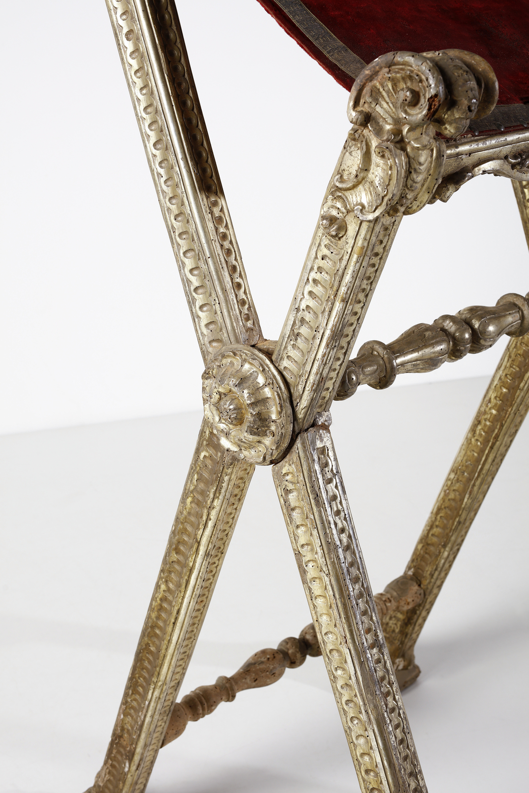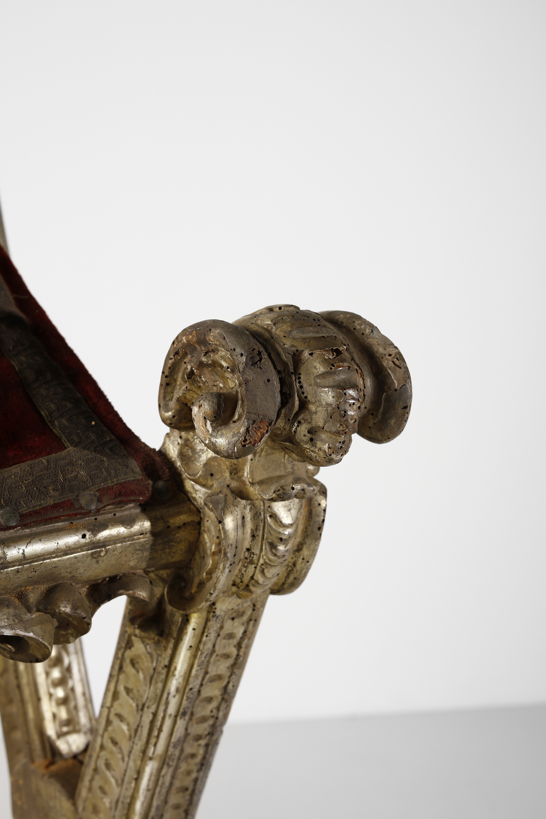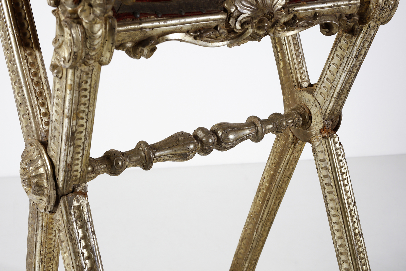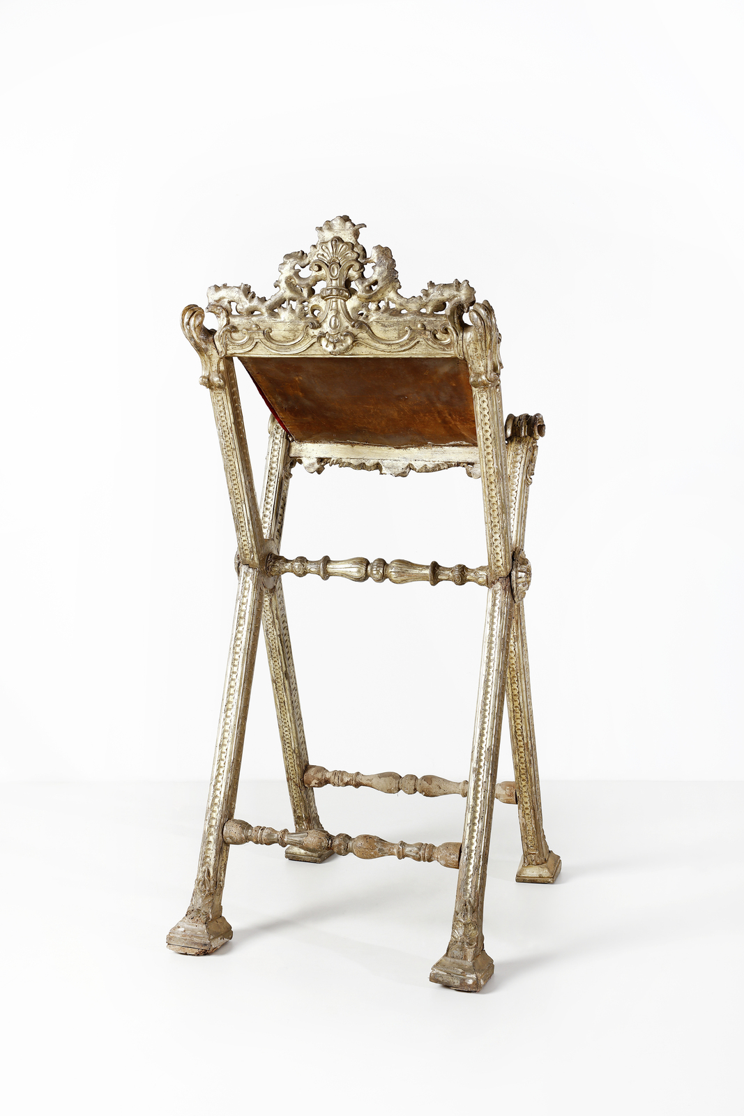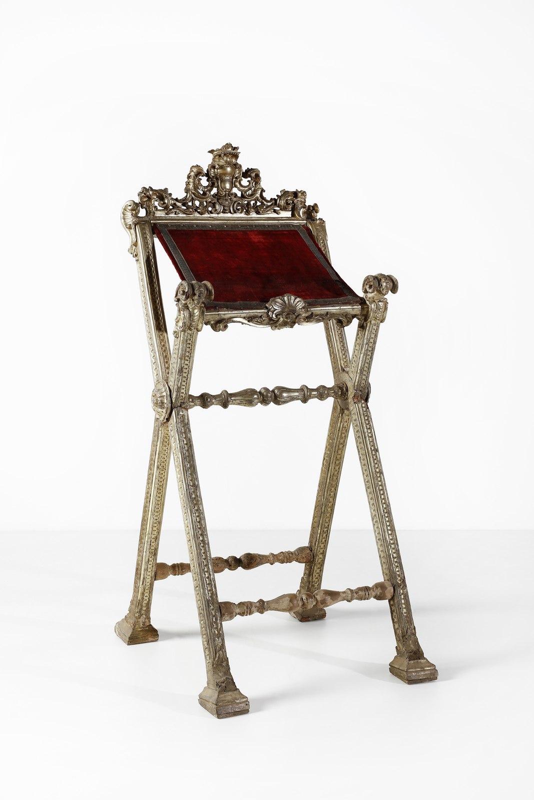 Leggio da terra in legno dorato a mecca con cappello con fregio a stemma ecclesiastico [..]