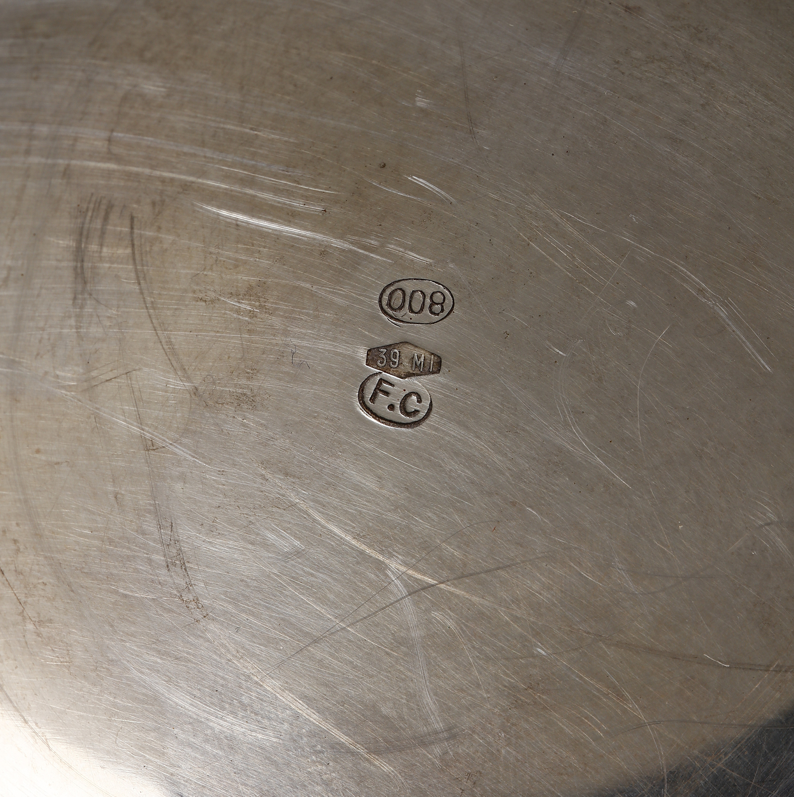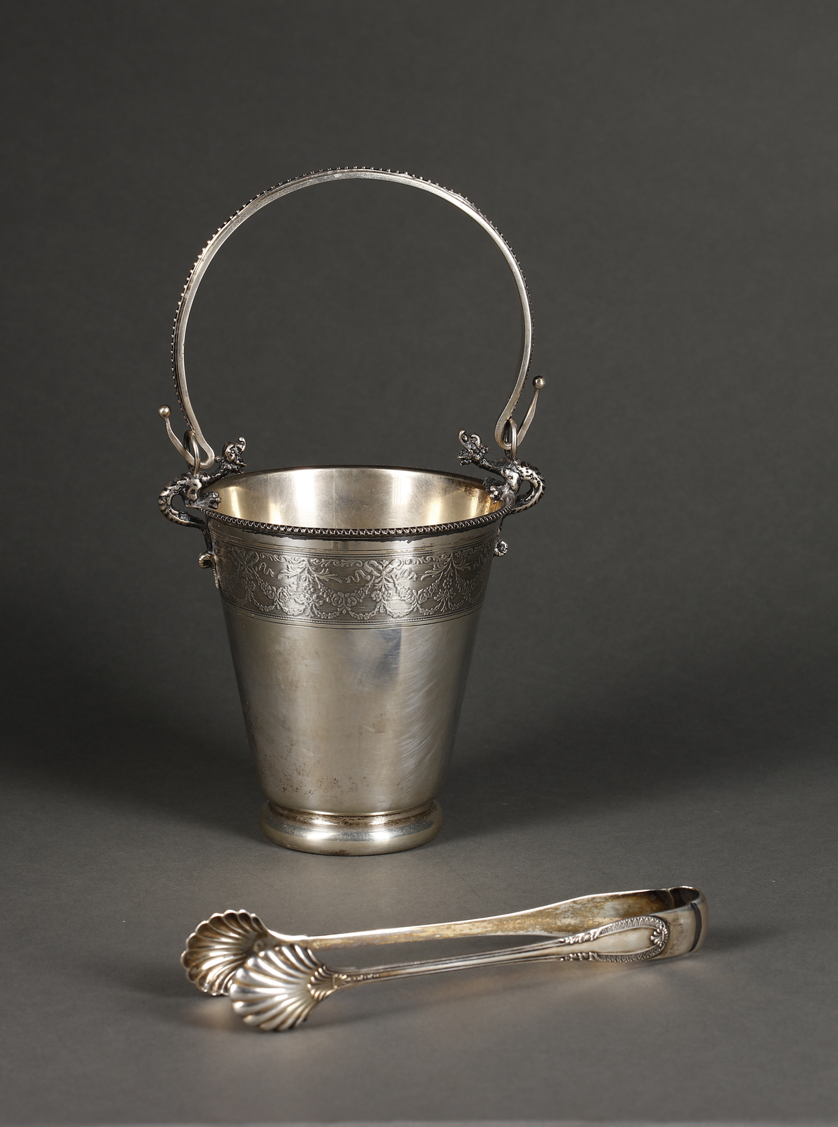 Marchio argenteria Fratelli Cacchione, Milano (sul secchiello). Titolo 800. Peso complessivo: 0,690 kg.