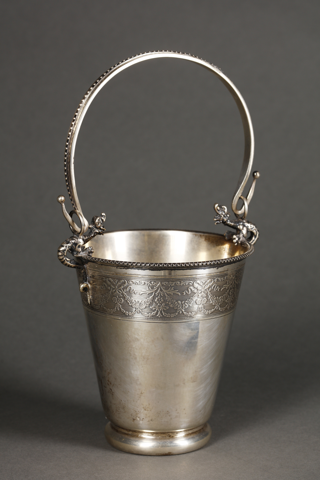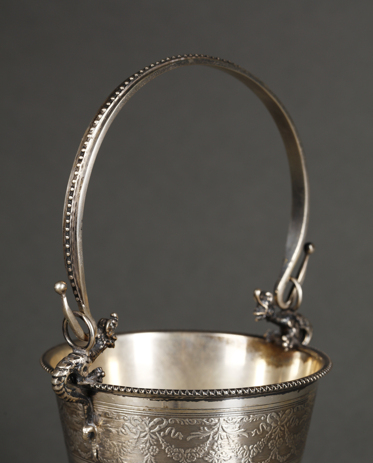 Piccolo secchiello in argento con fascia decorata a cesello in forma di ghirlande, [..]