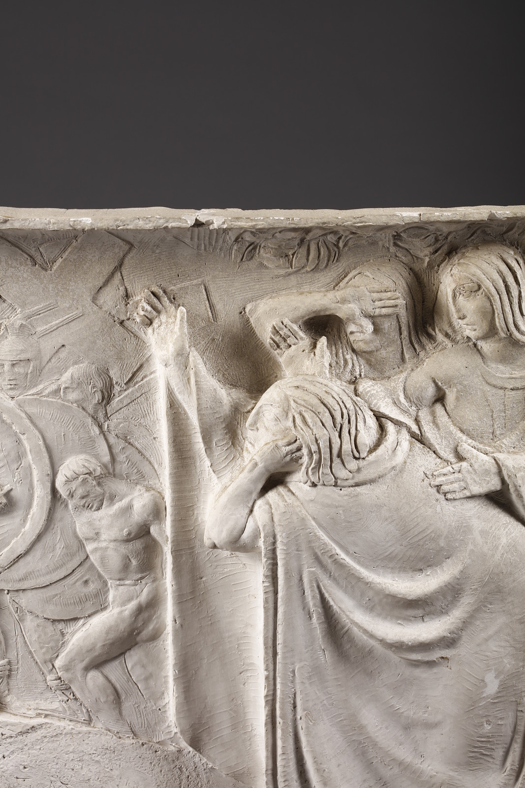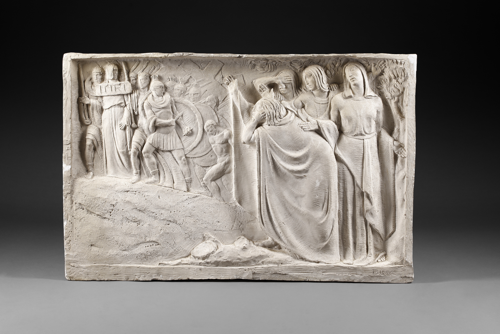 Firmato in basso a destra.Provenienza: Collezione privata, Roma.Nato a Carrara nel 1904, Antonio Biggi si trasferisce nel 1929 a Roma, dove, nel 1930, vince il Concorso Clementino dell'Accademia di San Luca con l'opera ''Cristo condotto al Calvario'', un soggetto analogo a quello del nostro rilievo in gesso: se da un lato non è possibile confermare che si tratti della stessa opera, certamente la presente scultura è databile su base stilistica al terzo decennio del secolo, con un forte influsso di alcuni degli artisti principali dell'epoca tra cui, soprattutto, Francesco Messina e Arturo Martini. Nel 1936 Biggi espose il gesso ''Squadrista'' alla Biennale di Venezia e partecipò poi alla Quadriennale romana dal 1943 al 1959, venendo nominato, a metà degli anni '50, Professore di scultura all'Accademia di Belle Arti di Napoli e Direttore di quella di Carrara.