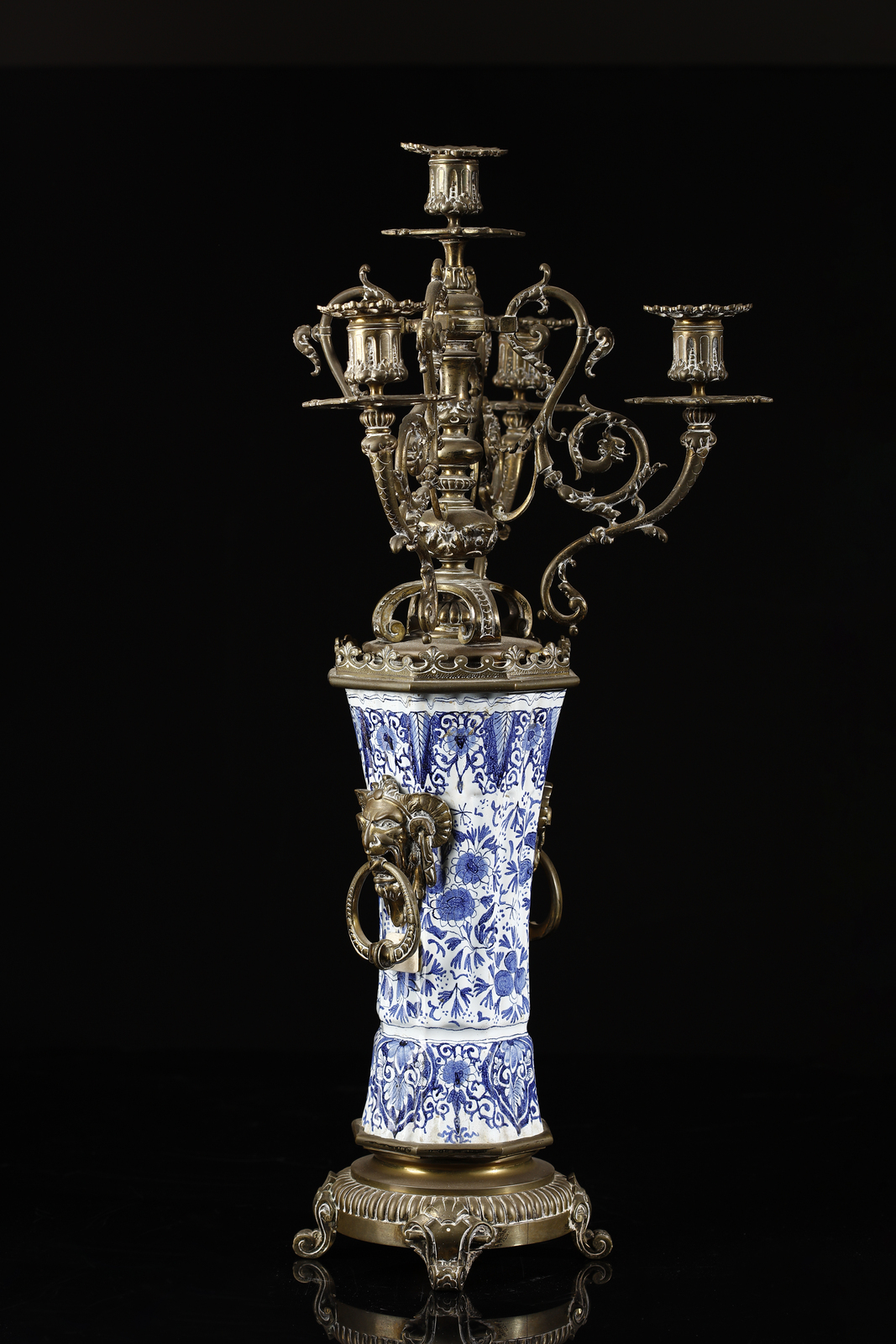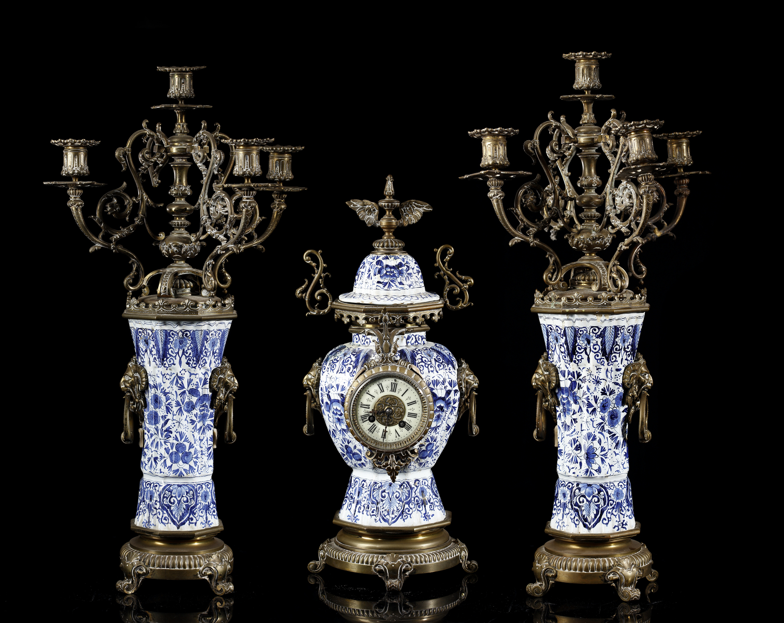 Trittico da camino in porcellana di Delft bianca e blu con inserti e montature in [..]
