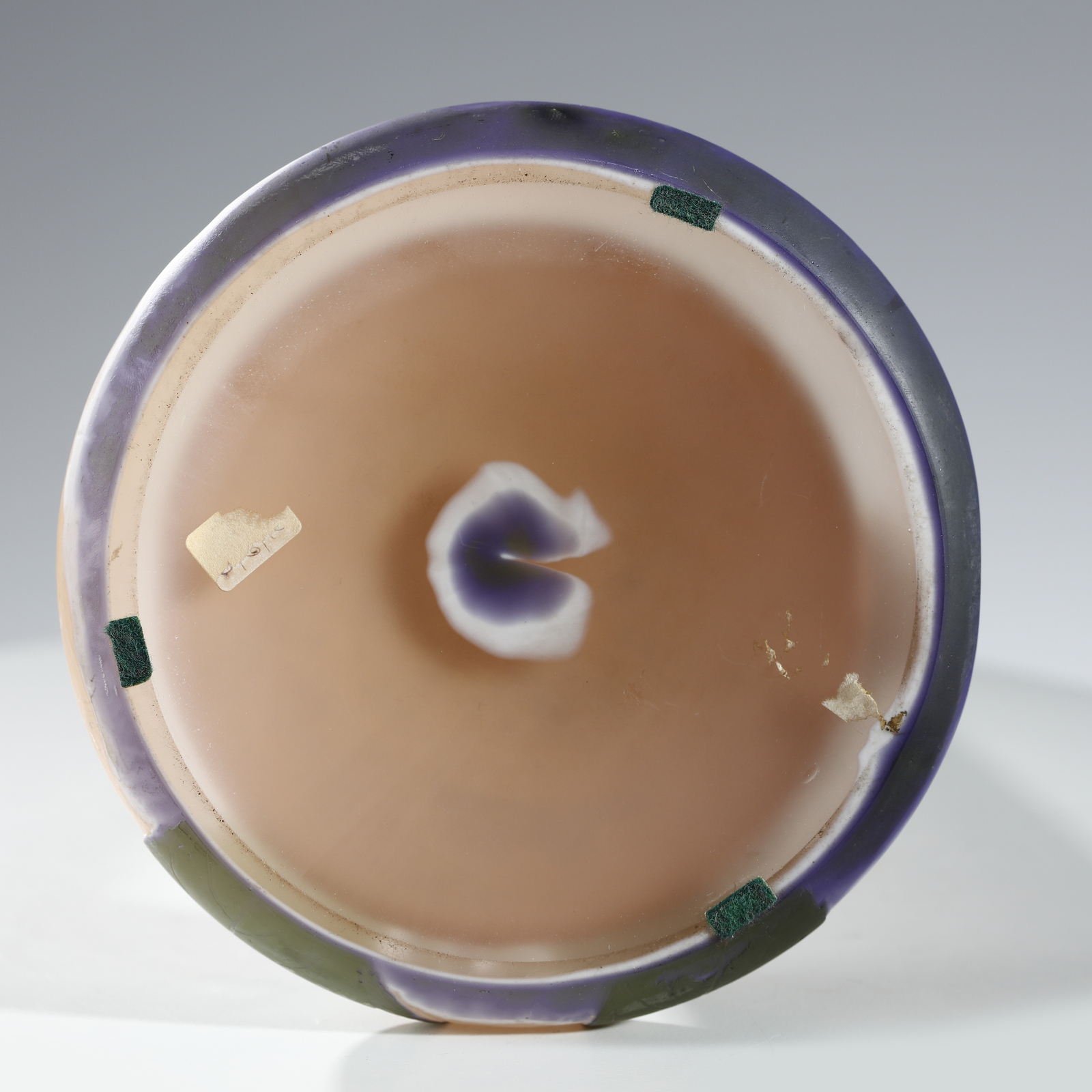 Vaso cilindrico con base a bulbo in vetro doppio, decoro di foglie e fiori nei toni [..]