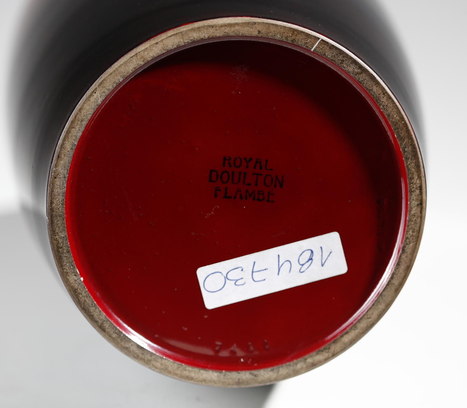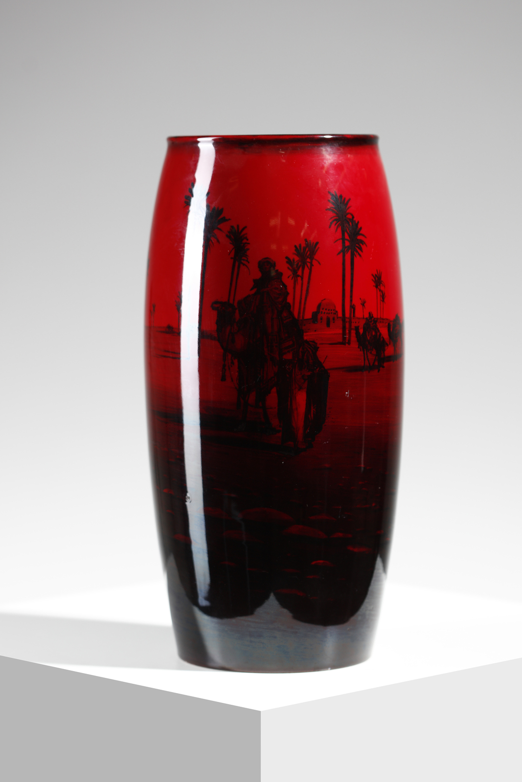 Vaso flambč in terracotta modellata a colaggio smaltata in rosso cupo con decoro [..]