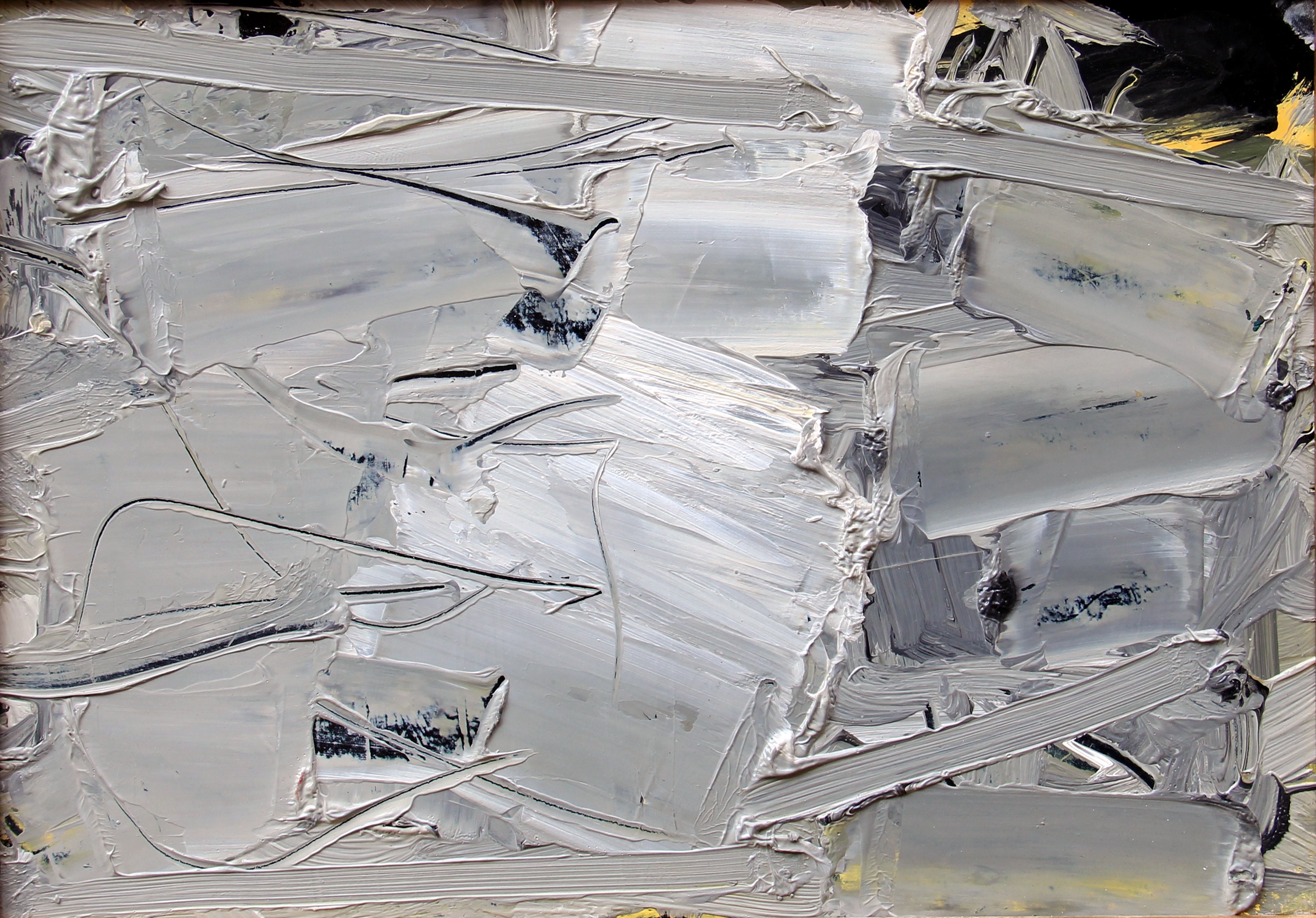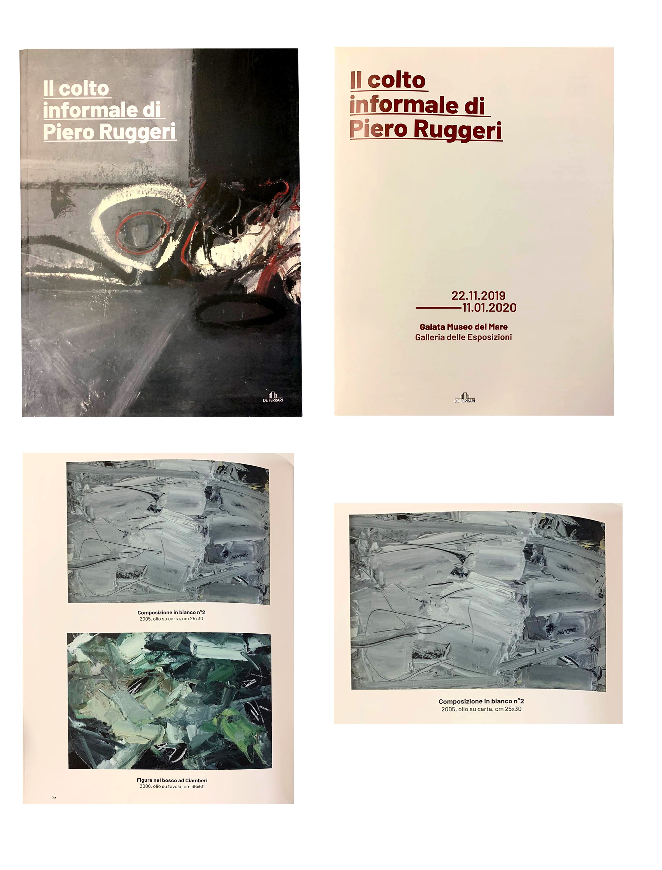 2005 Firma, data, titolo, tecnica, misure Ruggeri Piero, 2005, Composizione in bianco n 2, olio su cartoncino, 25x35;