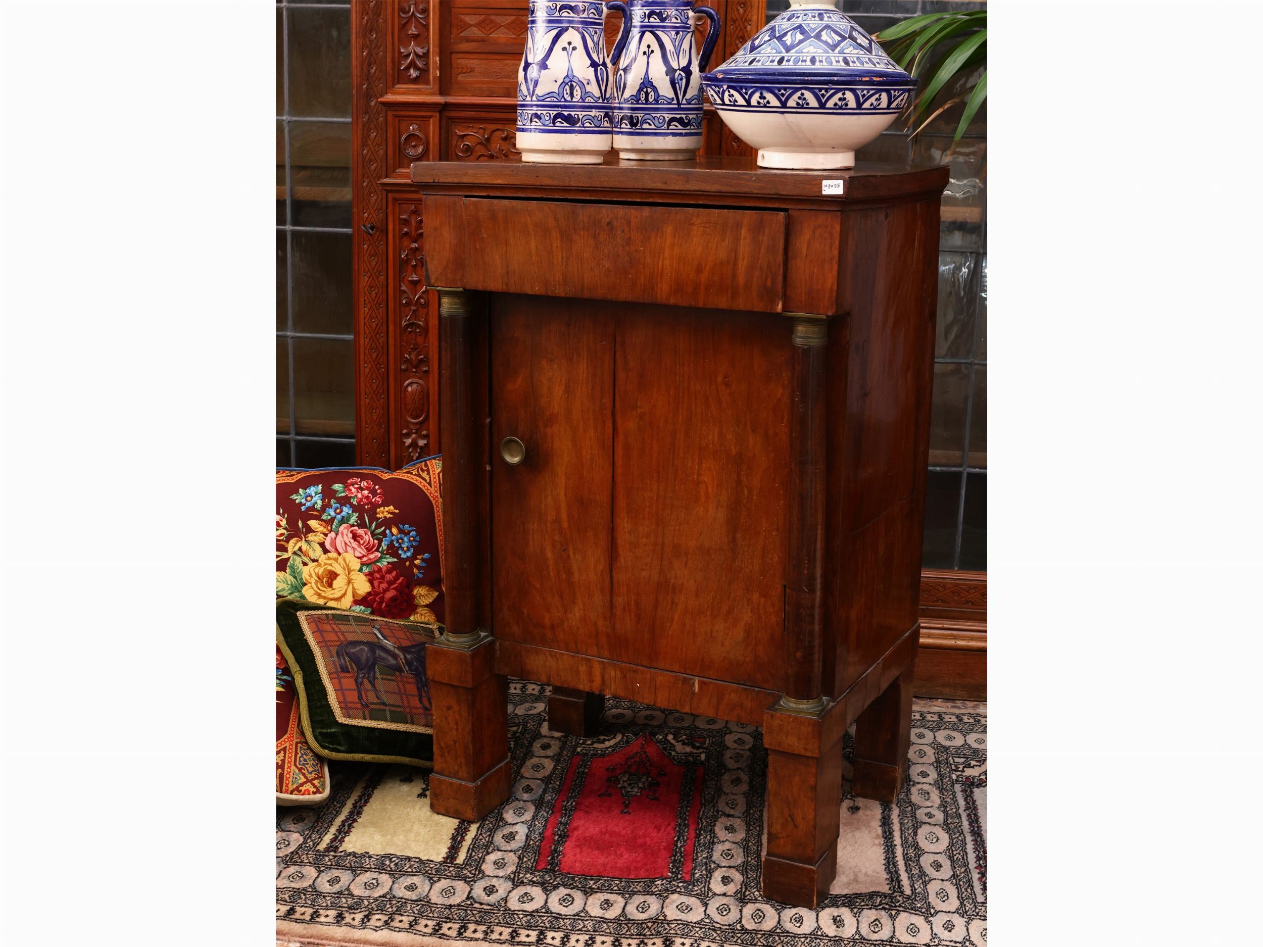 Comodino impiallacciato in piuma di noce