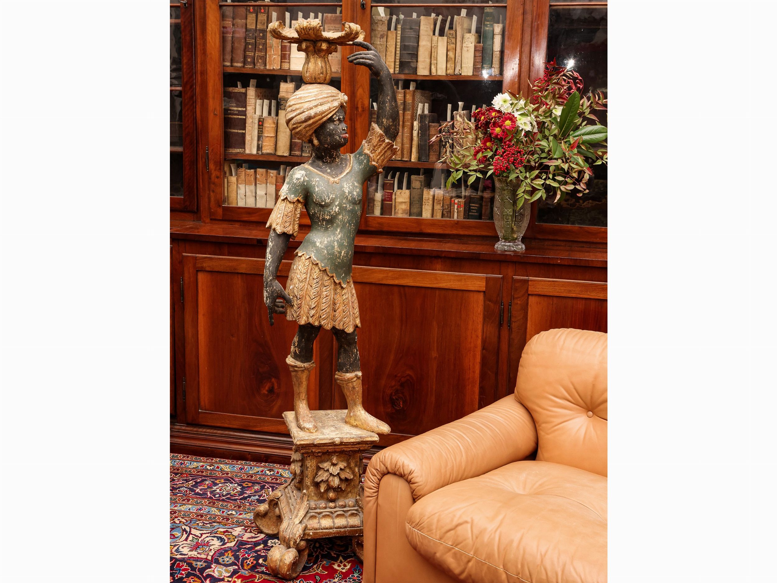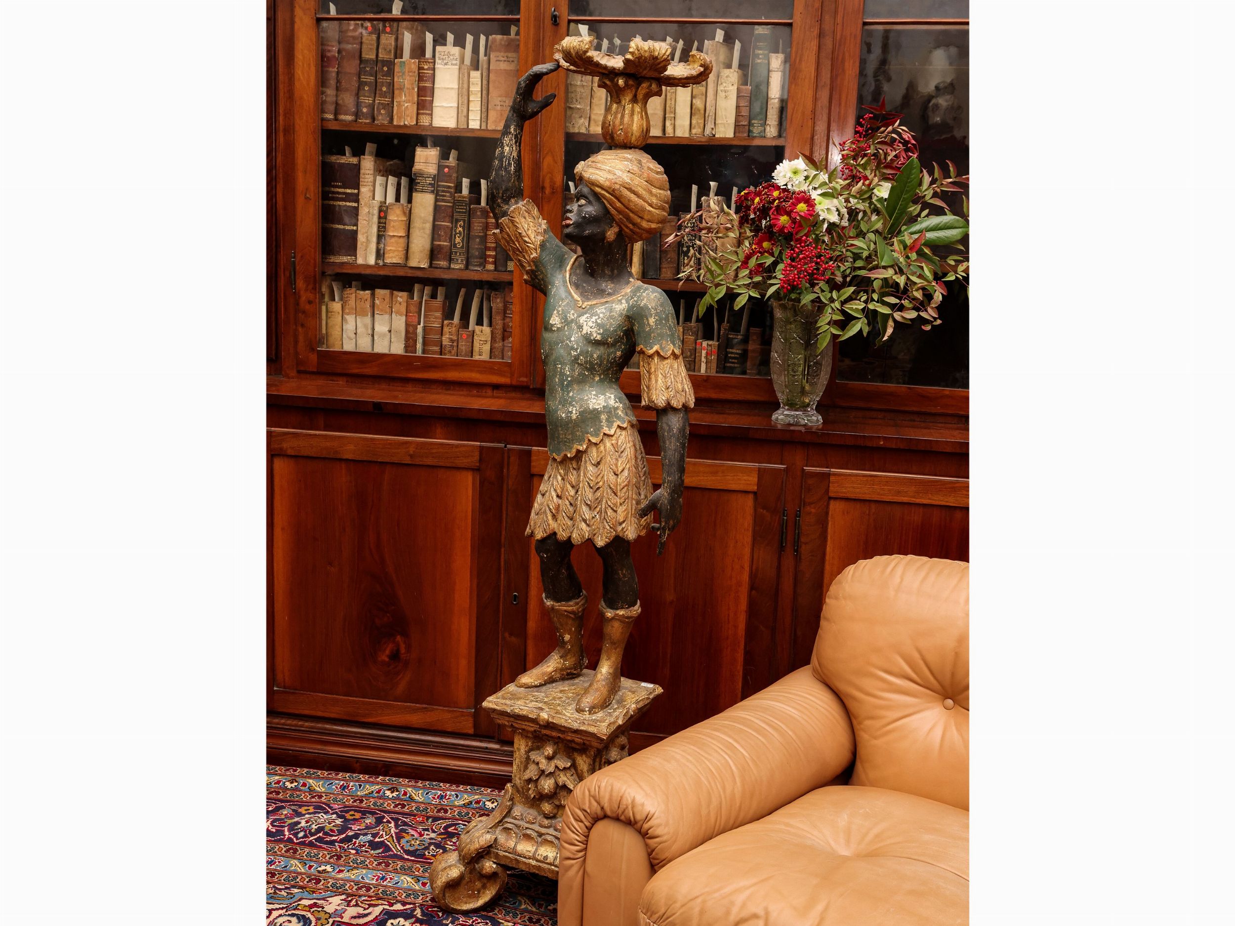 Coppia di mori in legno intagliato, laccato e in parte dorato