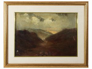 da cm 20x28 a cm 48x28 (5) raccolta di cinque dipinti ad olio su tavoletta e faesite, uno dei quali firmato Apr. [..]