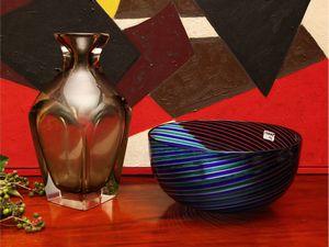 Vaso di forma conica in vetro incamiciato giallo, Laura Diaz de Santillana per Venini [..]