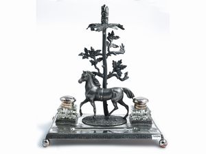 h cm 33x29x18 Inghilterra, fine del XIX/inizio del XX secolo centrato da cavallo sotto candeliere realizzato [..]