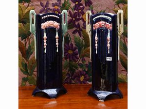 h cm 38,5 inizio del XX secolo di gusto Art Nouveau, dipinti nei toni del blu
