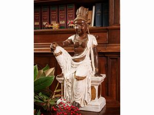 Figura orientale in terracotta smaltata e patinata, Zaccagnini