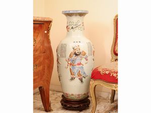 h cm 95 Cina, prima metà del XX secolo dipinto in policromia con quattro figure a bassorilievo di samurai e dignitari [..]
