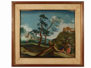 cm 40x46 seconda metà del XIX secolo olio su vetro, in cornice, alcuni difetti
