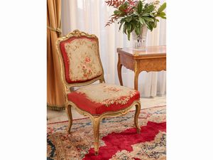 Coppia di sedie da conversazione in legno laccato e dorato