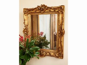 cm 85x73 fine XIX secolo/inizio XX secolo intagliate con motivi floreali e rocaille di gusto settecentesco, specchio [..]