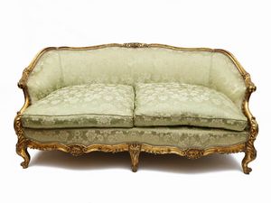 Divanetto a pozzetto in legno intagliato e dorato