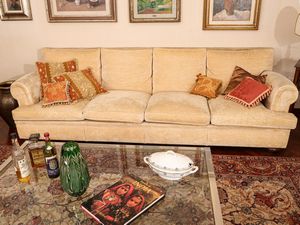 h cm 105x207x68 fine del XVIII secolo schienale sinuoso, braccioli rovesciati, imbottito e rivestito in filaticcio [..]