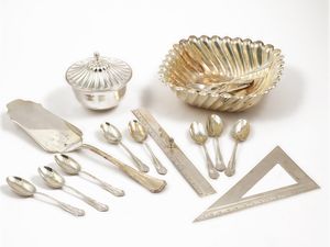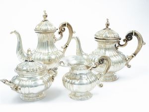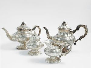 gr 1620, h da cm 11 a cm 17 (5) Italia, Anni Trenta composto da teiera, caffettiera, lattiera e zuccheriera, [..]