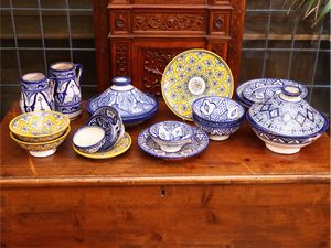 Assortimento di accessori in terracotta smaltata per Tajine