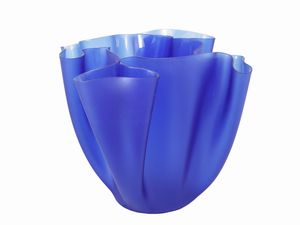 con una serie di dodici coppe da macedonia in vetro soffiato, piede rosa tenue, una serie di sei calici da vino [..]
