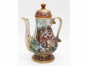 Grande versatoio in terracotta smaltata policroma