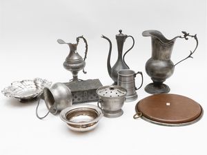 Lotto di accessori in peltro e metallo argentato