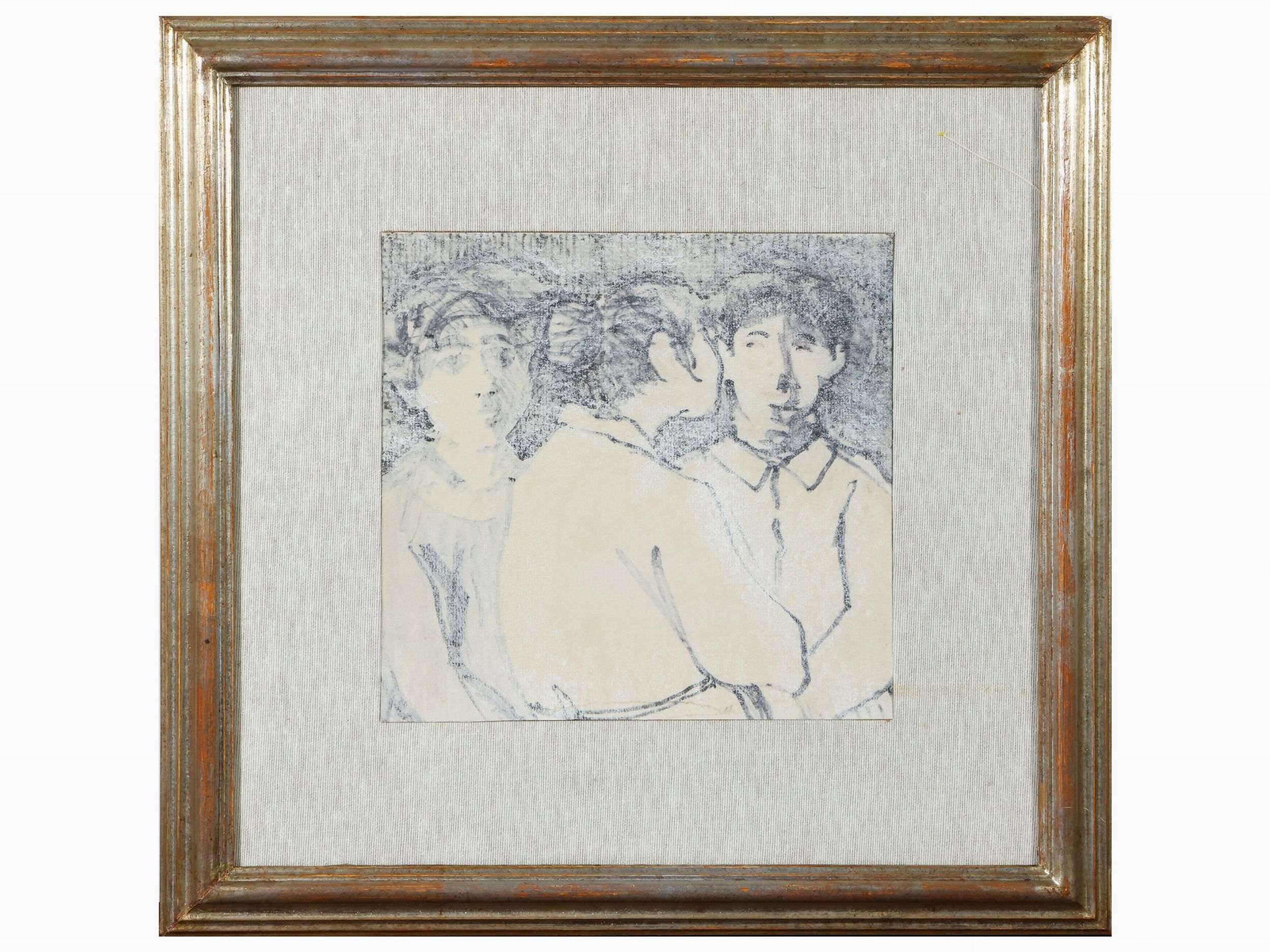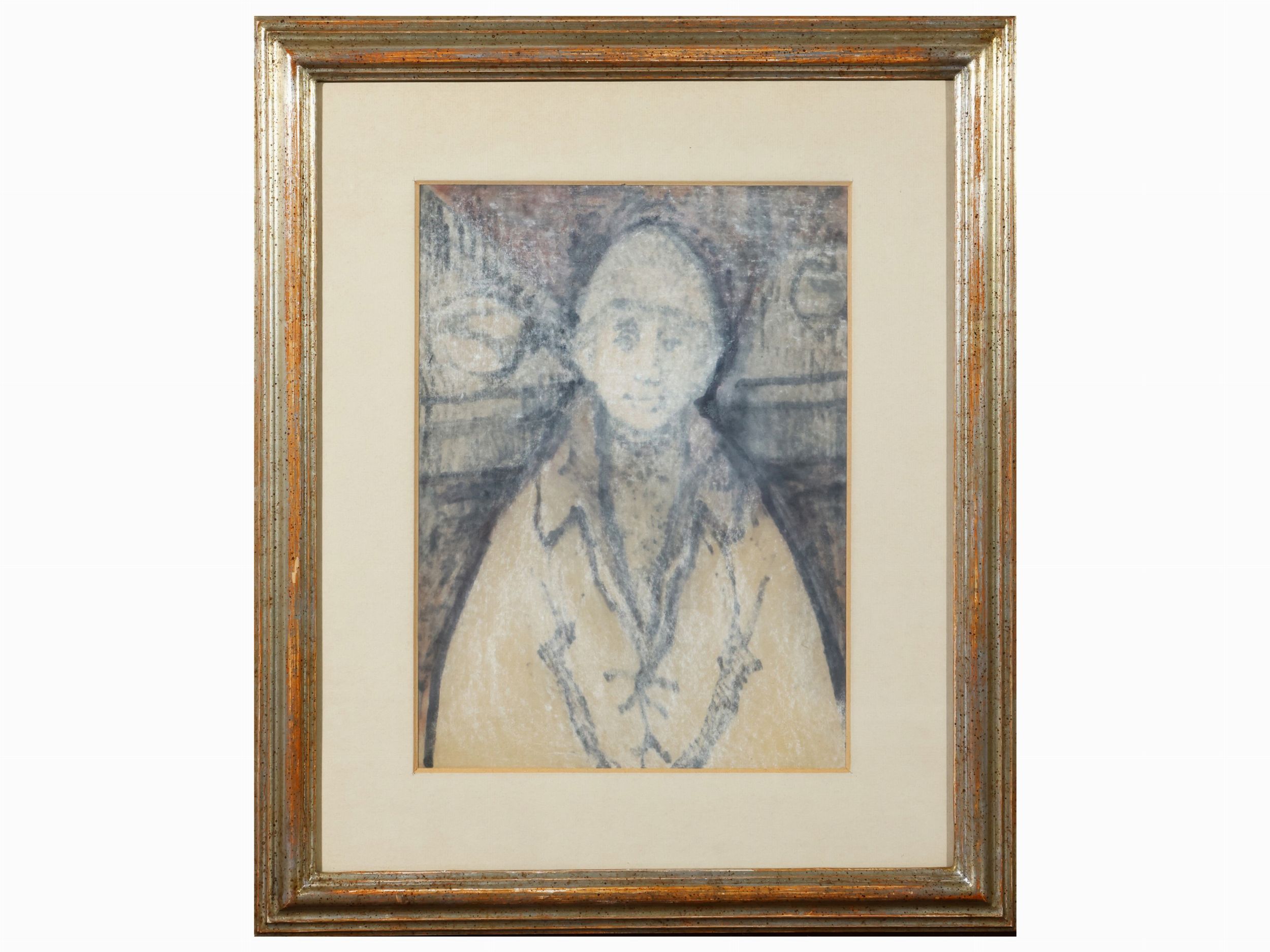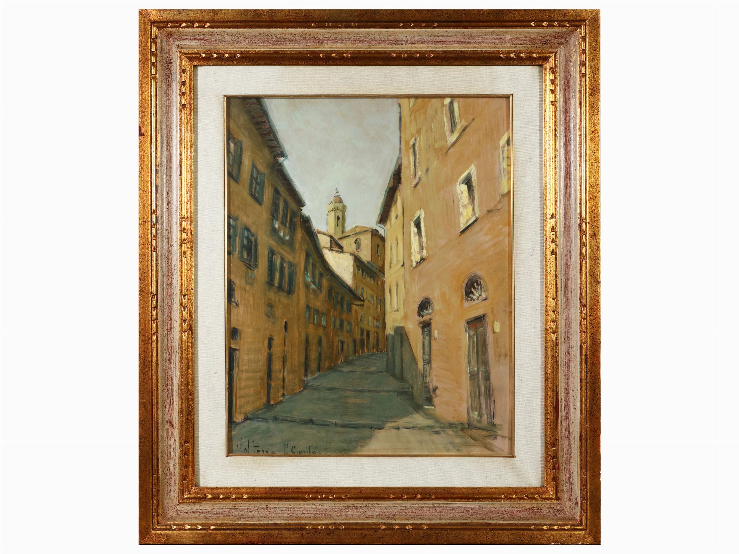 due tecniche miste su cartoncino attribuibili a Marcello Boccacci, un dipinto raffigurante un ritratto di Pirzio e un dipinto raffigurante Volterra di Ugo Capitoni, in cornice