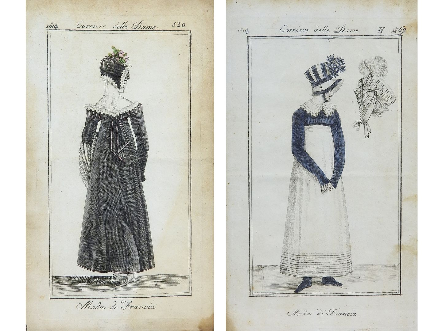 inizio del XIX secolo raccolta di sei incisioni, tratte da il Corriere delle Dame, in cornice, difetti