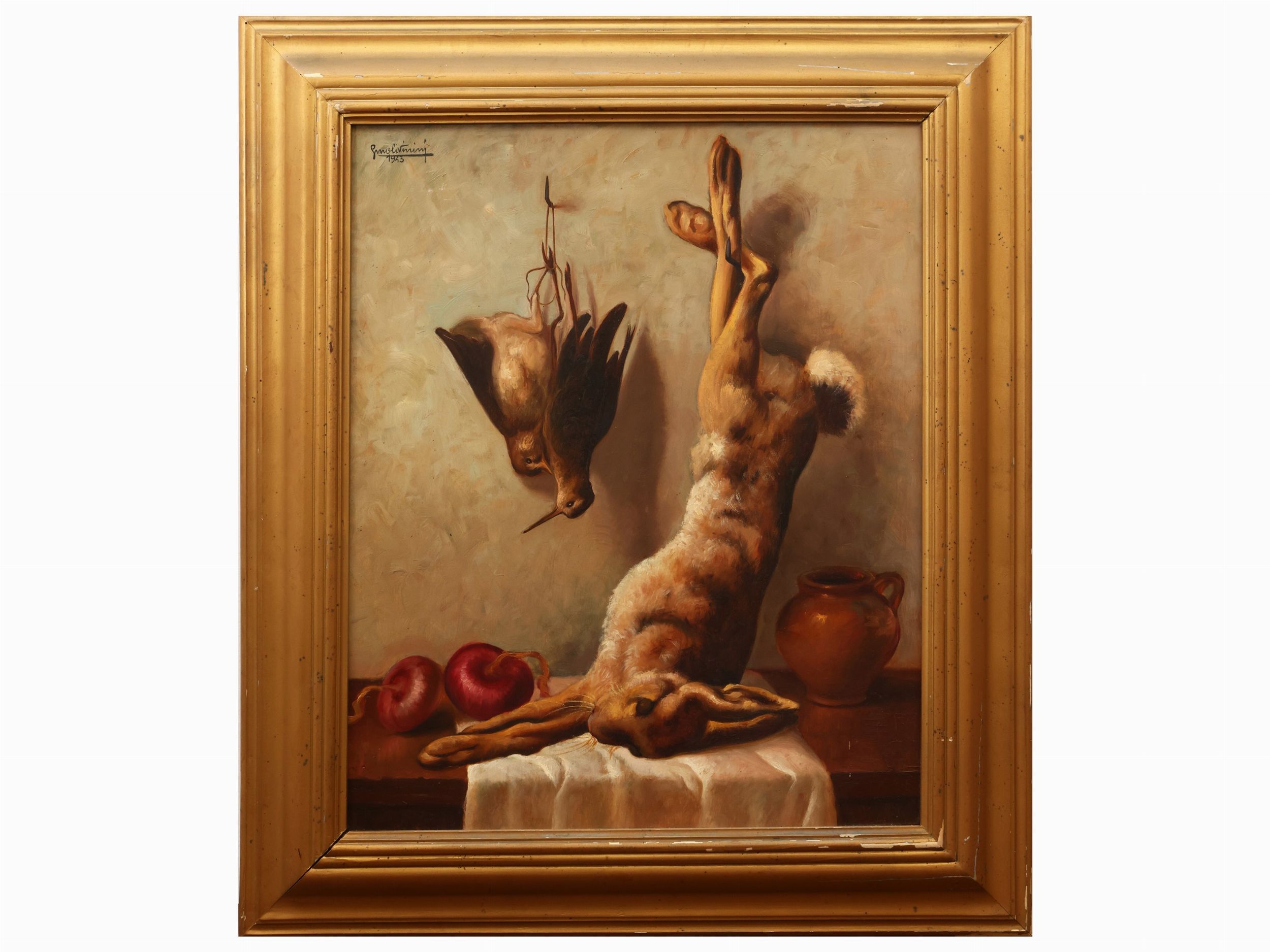metà del XX secolo olio su tavoletta, firmato e datato Gino Livinini 1943, in cornice