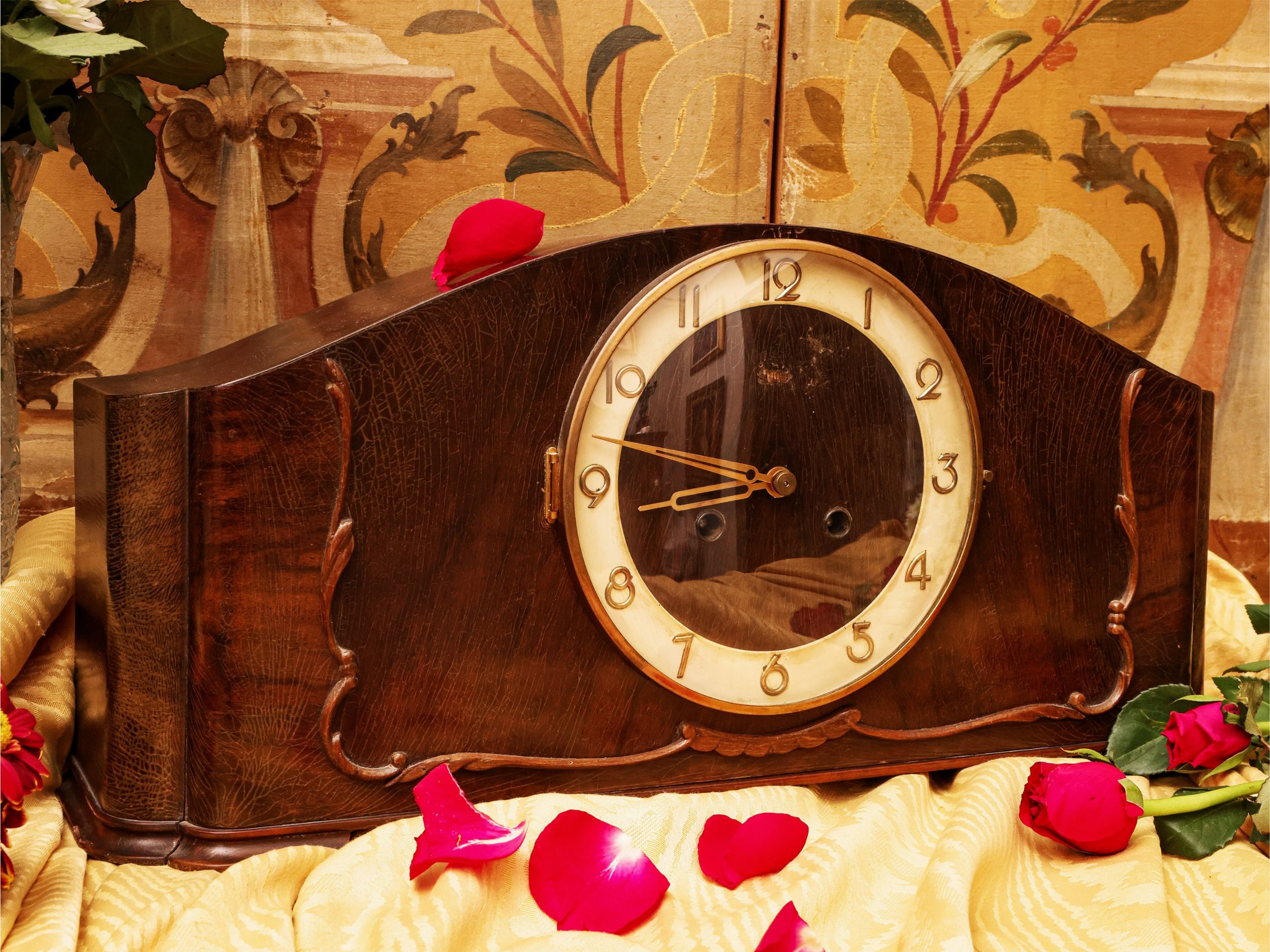 XX secolo cassa in legno, quadrante circolare ad indici arabi, doppia carica manuale, corredato della chiave di carica, difetti