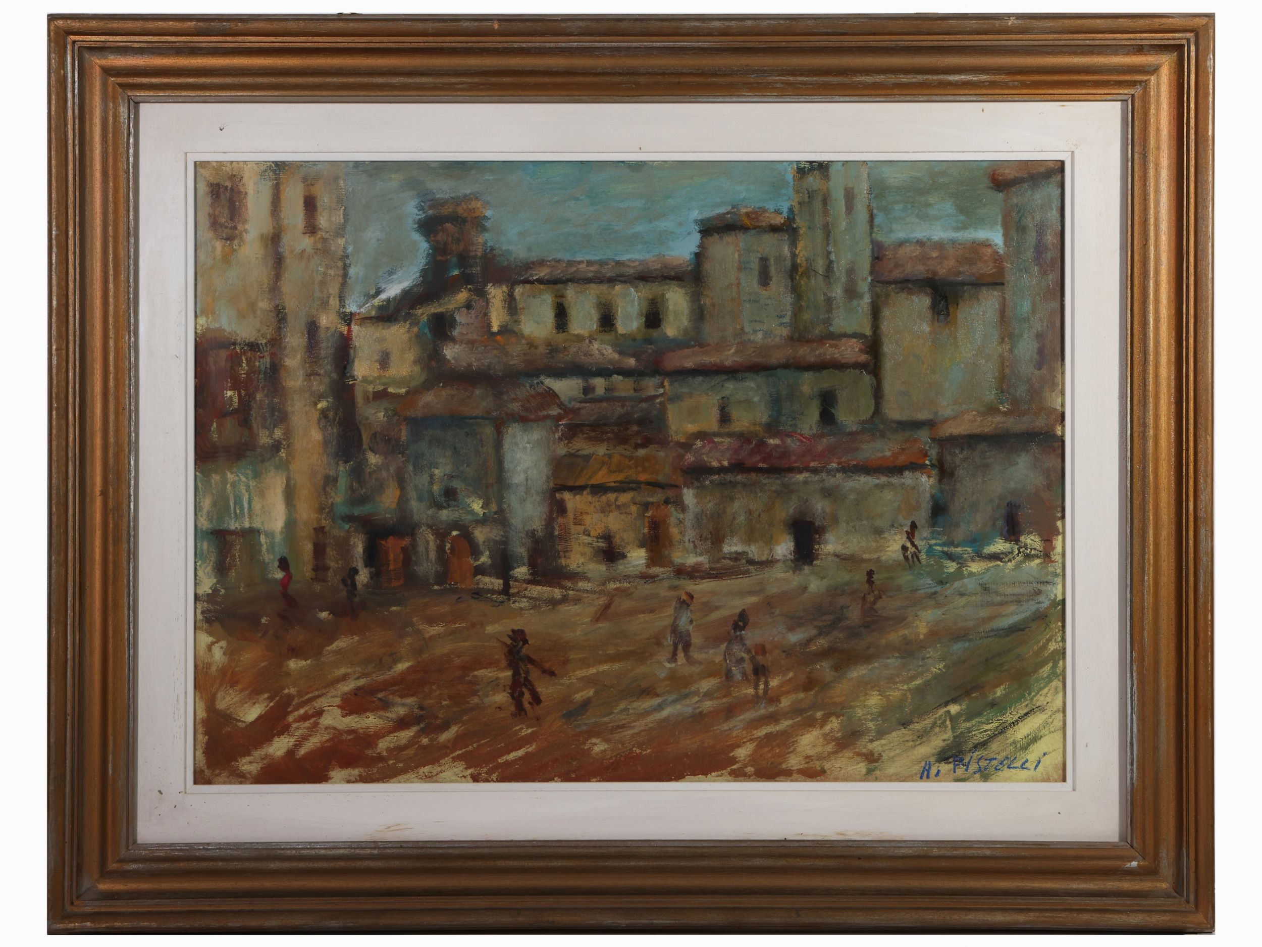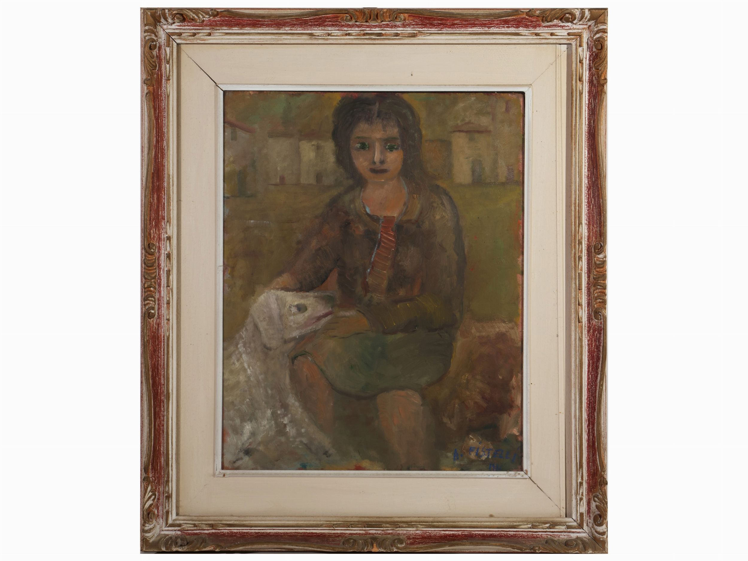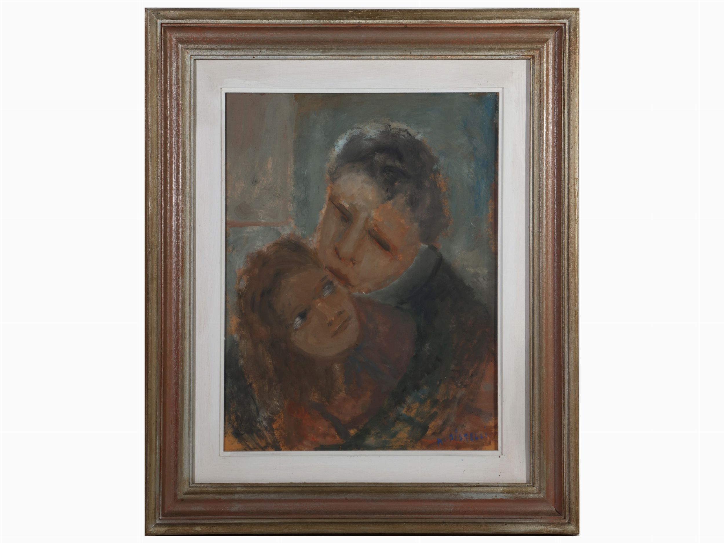 raccolta di cinque dipinti ad olio su tavoletta e faesite, firmati, in cornice