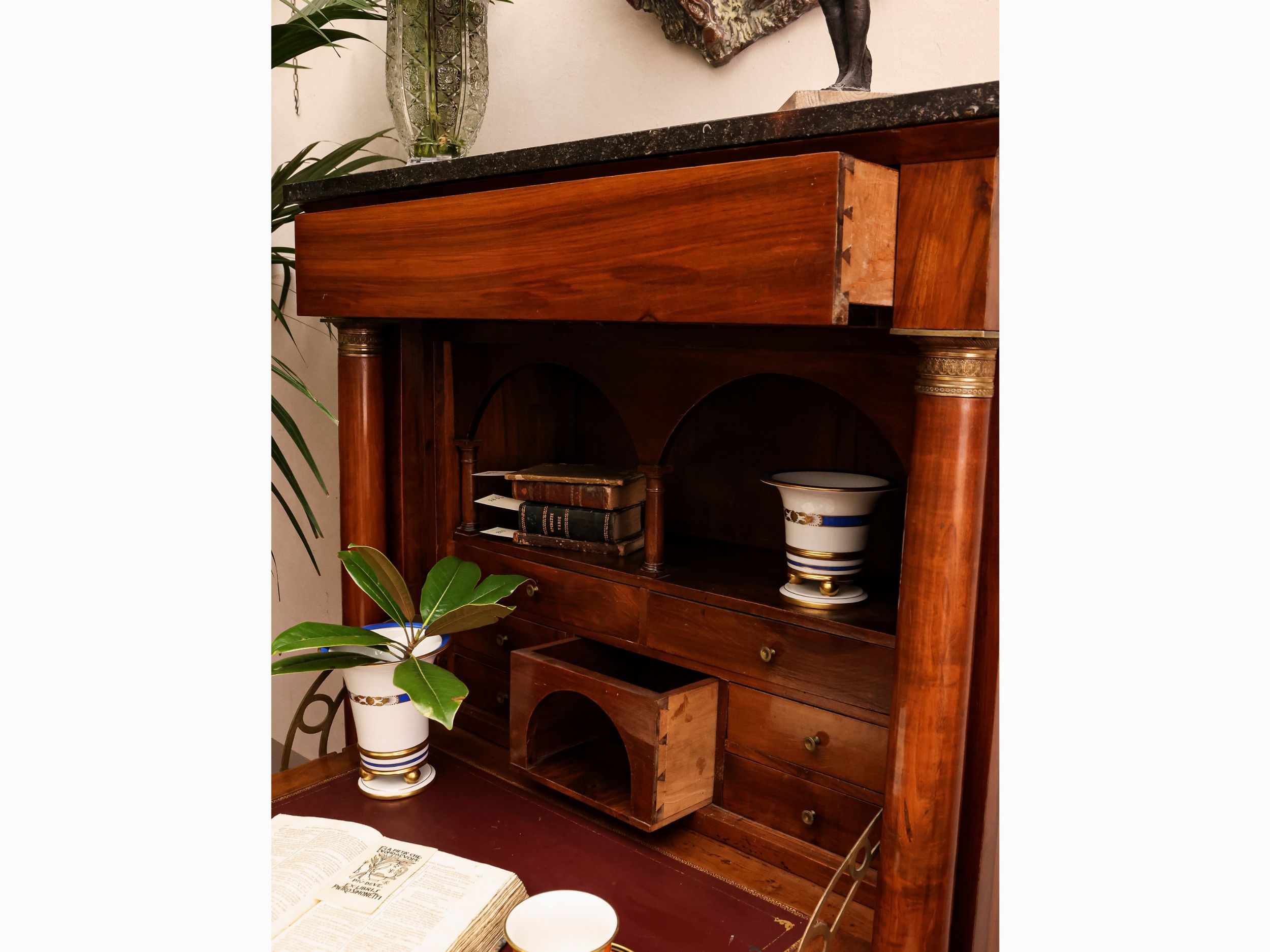 XIX secolo piano in marmo, sportello a calatoio a celare scarabattolo tra lesene a colonna