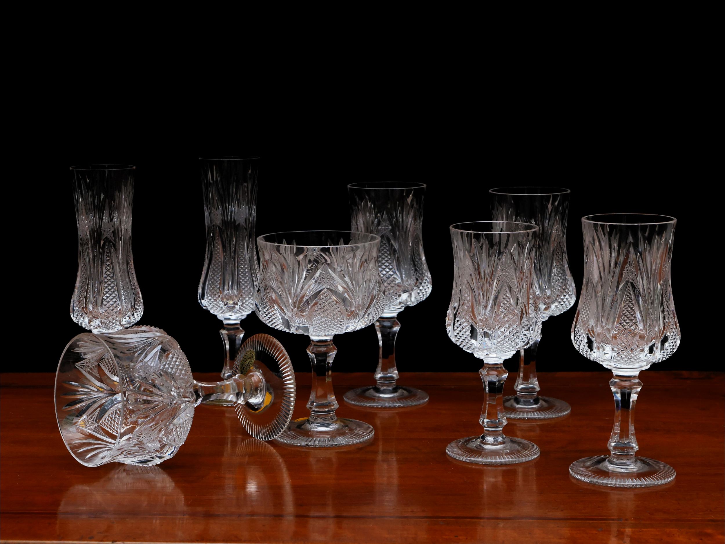 XX secolo completo per dodici persone con quattro gradazioni di calici, completo di caraffa e bottiglia