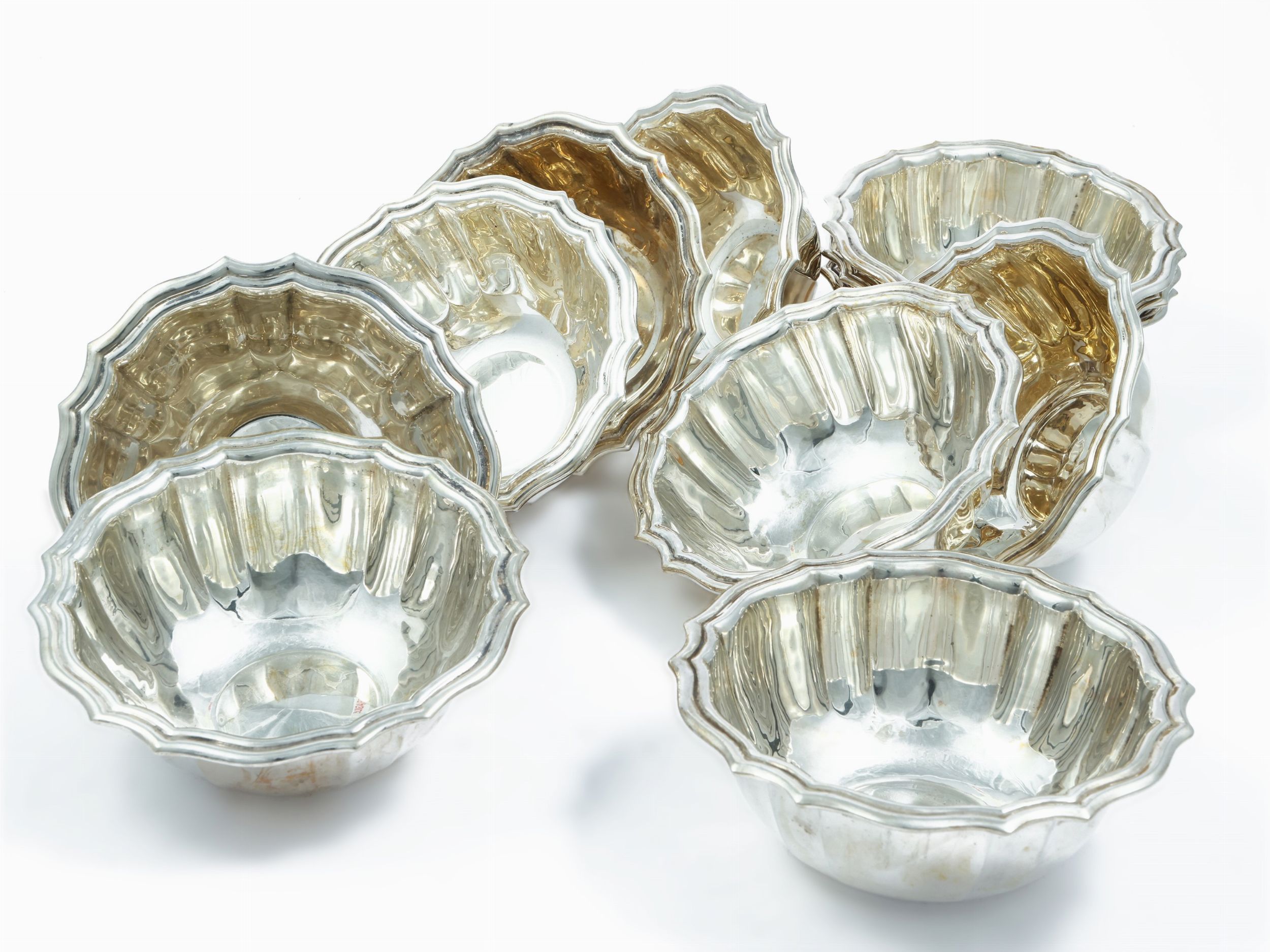 Set di dodici vaschette lavadita in argento
