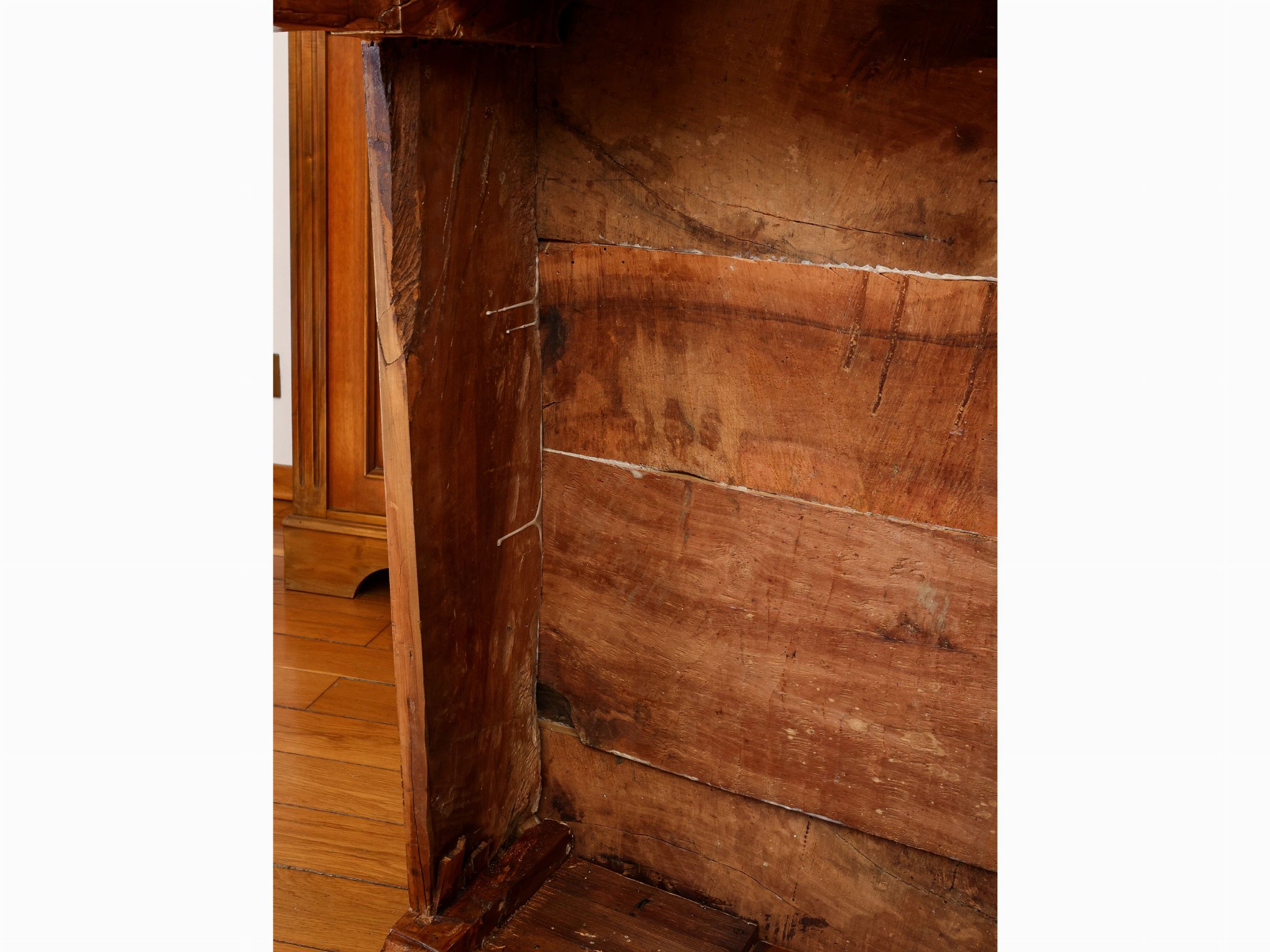 fine del XVIII secolo piano con intarsi in legni di frutto e filettature, un cassetto nella fascia aggiunto in epoca posteriore, gambe a faretra con collarino, alcuni restauri