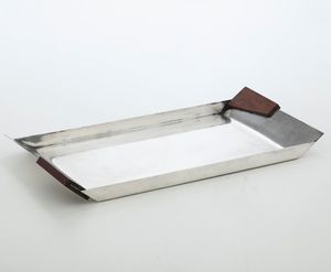 Vassoio in metallo argentato con due anse in legno. Francia, Produzione Christofle, [..]