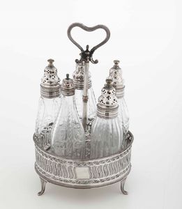 Set da tavola in metallo argentato sbalzato e cristallo