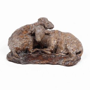 Gruppo con due pecore in terracotta, Napoli XIX secolo