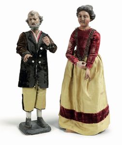 Dama e paggio Terracotta e legno policromo, vetro e stoffa Arte presepiale genovese [..]