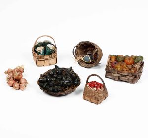 Sei ceste di frutta e verdura per statuine da presepe. Napoli XIX secolo