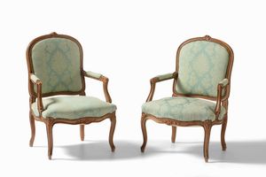Coppia di poltrone in legno intagliato. Francia XVIII secolo