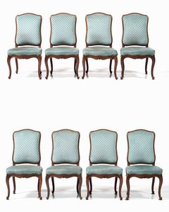 Sei sedie in legno intagliato con schienale traforato. XIX secolo