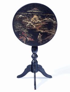 Tavolino a vela con piano laccato a chinoiserie, XIX secolo