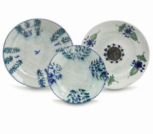 Tre piatti in porcellana, manifattura medio Orientale Turca o Iraniana